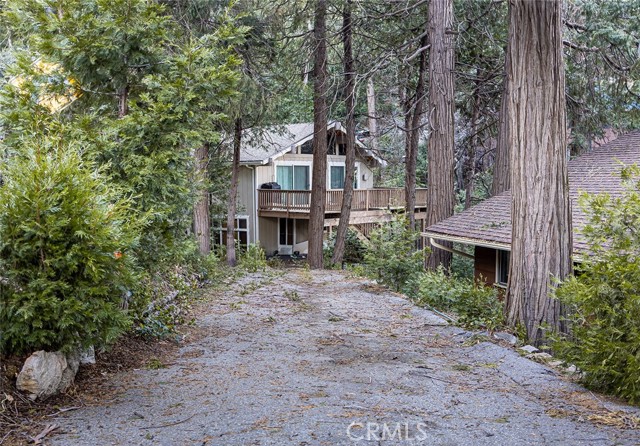 First time on the market! This spacious and welcoming home is ready to be your mountain retreat. A long driveway offers plenty of parking, leading to just 13 steps down to the deck and front door—step inside and feel right at home. The main level features an open-concept kitchen with generous storage, dishwasher, and microwave, flowing into a nicely sized living room with a cozy fireplace and sliding glass doors that open to the deck—perfect for relaxing or entertaining. Down the hallway you’ll find a full bathroom and two comfortable bedrooms. 5 steps down from entry way, you will find a Large storage closet. Continue down the stairs to a very large bedroom with its own fireplace, a ¾ bathroom, laundry room, and a versatile bonus room ideal for crafting, a home office, or whatever suits your needs. A door on this level provides access outside to the back of the home, with additional storage located behind the house. Conveniently located close to town, restaurants, Goodwin’s, Lake Gregory, and more. Bonus: enjoy watching the fireworks right from your own home!