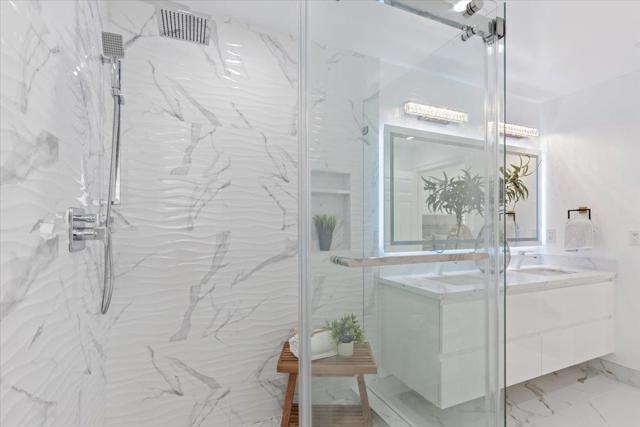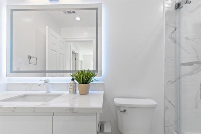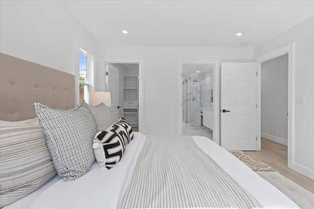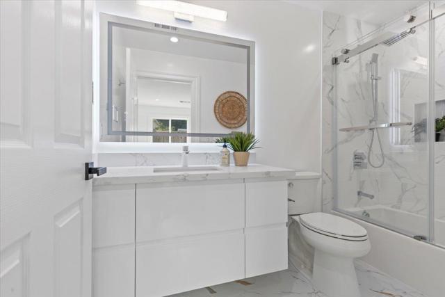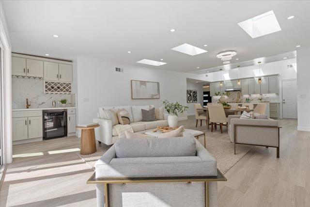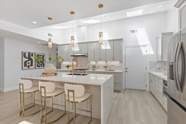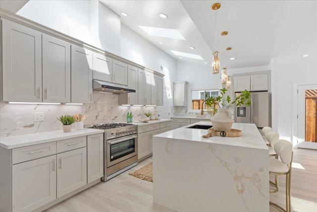 Reimagined in 2025 this Evergreen single-story 4-bedroom, 4-bath luxury residence offers over 2,000 sq. ft. Nearly 93% new construction of refined living space on a low-maintenance lot, delivering modern elegance at every turn. Step inside to soaring ceilings, abundant natural light from 6 skylights, and oak flooring throughout, setting the stage for a sophisticated lifestyle with ensuite bedrooms and your choice of inside or outside laundry. The chef's kitchen is a true centerpiece, featuring a dramatic stone waterfall island, custom cabinetry with abundant storage, premium appliances, a built-in coffee bar, and a cooler crafted for entertainers and culinary enthusiasts alike. The primary suite includes a walk-in wardrobe, indulgent en-suite bath, and serene views of your fig tree and future garden oasis. Designer bathrooms showcase quartz vanities, LED mirrors, and glass-enclosed showers. Flexible laundry options allow for a stackable washer/dryer inside the home or in the epoxied garage. Every detail is newroof, electrical, plumbing, windows, insulation, manicured landscaping with auto irrigation. Additional highlights include an epoxy-finished 2-car garage with EV charging, tankless water heater, and central A/C.