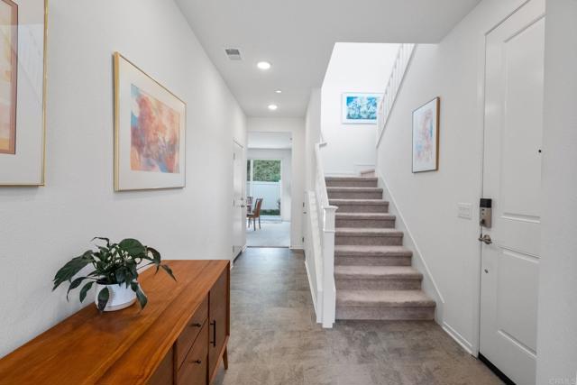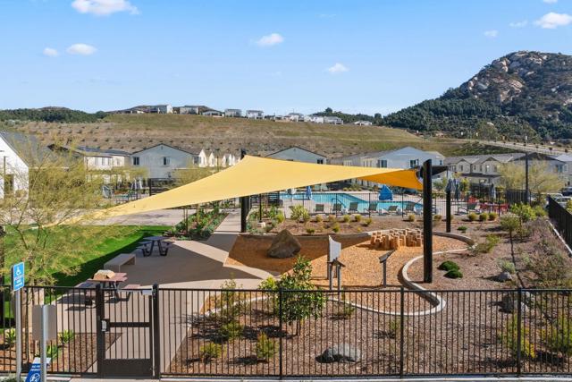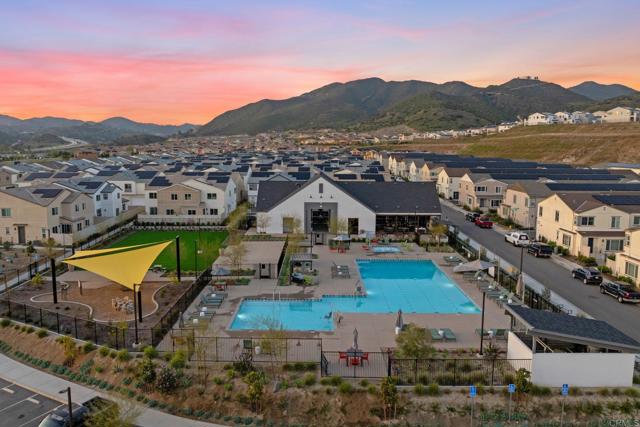 PRICE ADJUSTMENT! Experience modern living at 256 Hass Lane in Fallbrook, CA! The Plan 2 of the "Castello" homes floor plan. This inviting home features 3 bedrooms, 2.5 baths, and 1,985 sq. ft. of space filled with natural light and breathtaking hillside and mountain views. Did I mention the energy savings with PAID solar panels?! The open living area seamlessly connects to a kitchen upgraded with granite countertops and stainless steel appliances. To maximize your space, the flex room downstairs comes with a custom built-in shelving unit. It's ready for use as an office/den. The primary suite boasts a walk-in closet, dual sinks, and a walk-in shower. The secondary bedrooms are also spacious, as is the hallway bathroom that offers dual sinks and a tub/shower combo. A bonus is the convenience of having the laundry room on the second floor. Enjoy a private, nicely landscaped backyard that is sure to be a family favorite with an in-ground custom built swing set, ideal for relaxation and play. Let's not forget about all of the awesome amenities! From 14 miles of maintained trails, to playgrounds, parks, Bocce Ball, clubhouse, pool, bbq areas, dog parks and a working avocado and citrus grove that offers its residents the fresh harvest is just a part of life here at CITRO. Don't miss out on this charming opportunity!