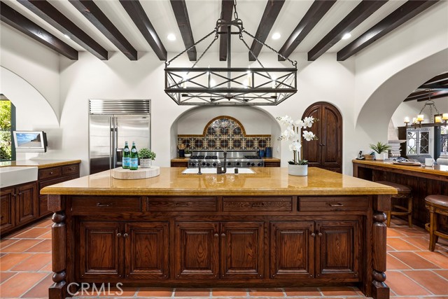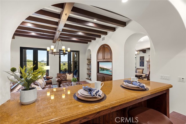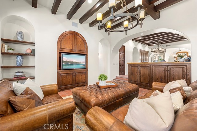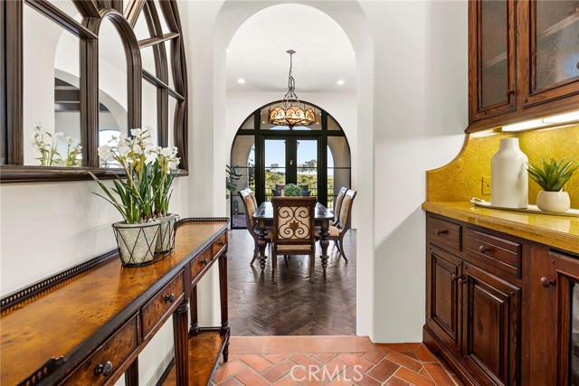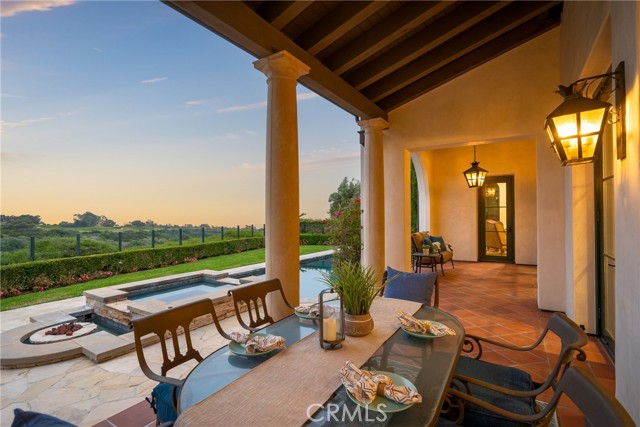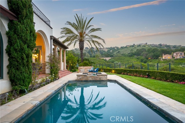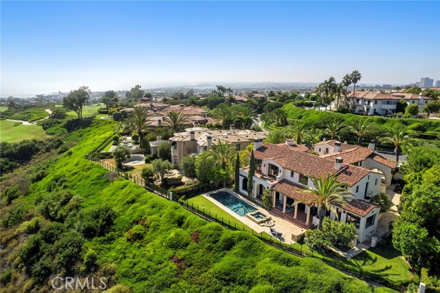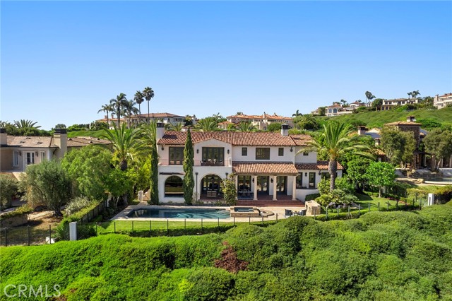 Nestled serenely on the front row, this extraordinary estate commands an elevated position, gifting panoramic vistas that stretch across the expanse of the Pelican Hill Golf Club and beyond, where the azure ocean meets the sky. Encompassing over 7,900 square feet of opulent living space, this residence is a testament to boundless luxury with a distinctive coastal essence. Set within the prestigious confines of an around-the-clock guard-gated community, this property ensures the utmost privacy and security. Adding to the allure is the convenience of an elevator, seamlessly connecting all three levels of the residence. A picturesque embodiment of resort-style living, the custom design of this remarkable home encompasses 5 lavish Bedrooms, 7 Full Bathrooms, and 2 Half Bathrooms. The grandeur is accentuated by the presence of a separate front casita, offering privacy and versatility. A tranquil private courtyard welcomes you, setting the tone for the lavish experience within. The outdoor expanse unveils an oasis of relaxation, complete with a glistening pool, an invigorating spa, and a barbecue area where al fresco dining is an art form. The sweeping views of the golf course merging with the vast ocean create an ever-changing backdrop, enriching each moment spent here. This residence is a symphony of indulgence, exemplified by its offerings of a subterranean 6-car parking garage spanning 1,300 square feet, an upper-level direct access 2-car garage, a wine room for connoisseurs, an intimate theater for cinematic experiences, a well-equipped gym for wellness pursuits, and a soothing sauna for moments of respite. Drawing inspiration from the famed architect Wallace Neff, the residence exudes an air of timeless elegance. Graceful archways and hand-carved beam ceilings adorn the interior, while hand-fired terra cotta flooring graces the floors, each element meticulously chosen to define luxury living. Set within the renowned 504-acre enclave of Pelican HillĀ®, this home enjoys privileged access to a world of unrivaled coastal beauty. A sanctuary of privacy and seclusion, this community is a testament to refined living, offering a retreat where family and friends gather to create lasting memories. Seize the opportunity to live amidst architectural excellence, surrounded by lush landscaping, and awaken each day to unparalleled vistas. This estate represents the epitome of luxury living, where classic sophistication meets the tranquil allure of coastal living.