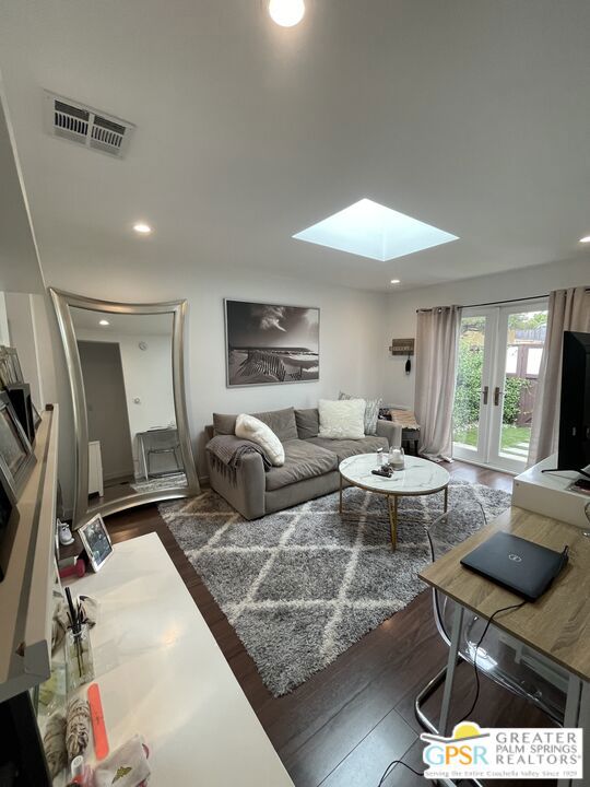 DOGS & CATS WELCOME! 2 PRIVATE YARDS AND IN UNIT WASHER DRYER IN HEART OF SM. Experience the best of indoor/outdoor California living in this beautifully renovated bungalow that truly feels like a private home.Rare Outdoor LivingTwo private yardsFront yard: Spacious, accessed through elegant French doors from the living room + doggy door for petsRear yard (off kitchen): Ideal for BBQ, dining, and relaxingHome FeaturesBright, airy layout with large skylight in living roomQuiet 4-unit building with only two shared wallsEnhanced soundproofing between unitsTwo private entrances (front + rear yard access)Living room leads to front yard through French doorsDoor from kitchen leads to private yard great for diningKitchenCaesarstone countertopsStainless steel appliances:Gas stove/ovenDishwasherLarge refrigerator with water/ice makerMicrowaveComfort & ConvenienceWood-style flooring throughout + tiled bathroomIn-unit washer & dryerCentral A/C and heatingCustom top-down/bottom-up blinds + blackout blinds in bedroomsSpacious primary bedroom fits a king bed + built-in drawersAmple closet spaceSmart Home FeaturesRing doorbell with videoNest thermostat (control temperature remotely great for pets)ParkingOne (1) reserved parking space availableEV charger availablePrime LocationJust blocks from Ocean Park Blvd: cafes, restaurants, gyms, yoga studios, banks & parks~10-minute bike ride to the beachEasy access to Westwood, Brentwood, Beverly Hills, and major freewaysOwner pays for water and trash and gardener. Tenant pays for all utilities, internet and cable.