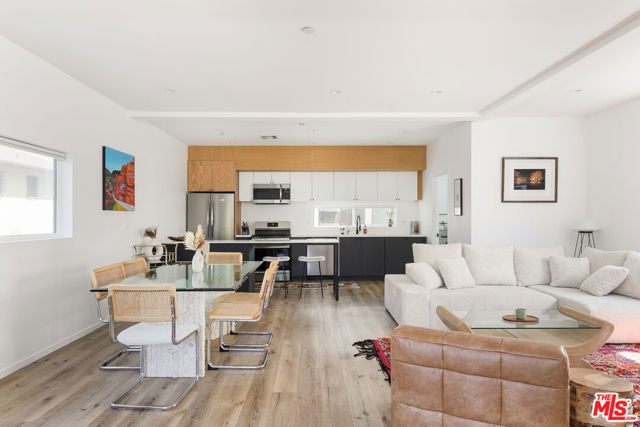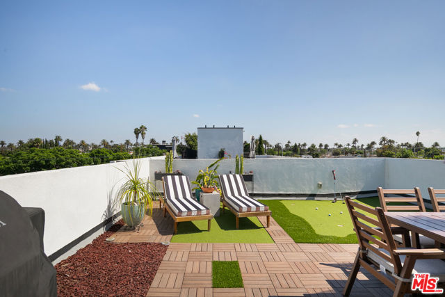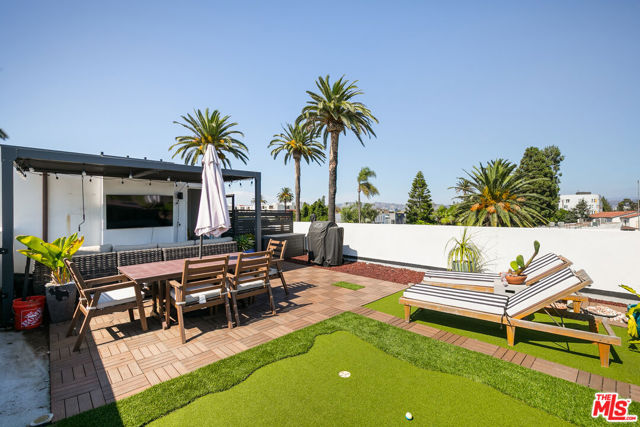 Discover modern design and open-concept living in this 2021-built freestanding home in West Adams. Spanning 2,188 sq ft across three levels, it offers four bedrooms, three with ensuite baths, plus thoughtful indoor-outdoor spaces throughout. The private rooftop deck is the ultimate highlight, transformed into a second living area with a putting green and generous space to entertain, all framed by sweeping 360-degree city and hillside views. Balconies and oversized windows on every floor invite light and leafy outlooks, while a dramatic wall of windows floods the bedroom level with natural light. The main floor is ideal for gatherings, with a spacious great room, balcony, and chef's kitchen with high-end appliances. Modern conveniences include central air, a direct-entry two-car garage, smart wiring, exterior security cameras, and a gated driveway. Moments from acclaimed dining and nightlife at Alta, Mizlala, Vicky's All Day, Chulita, and "Damn I Miss Paris," with art galleries, shops, and Johnnie's Pastrami all nearby, this is West Adams living at its best.
