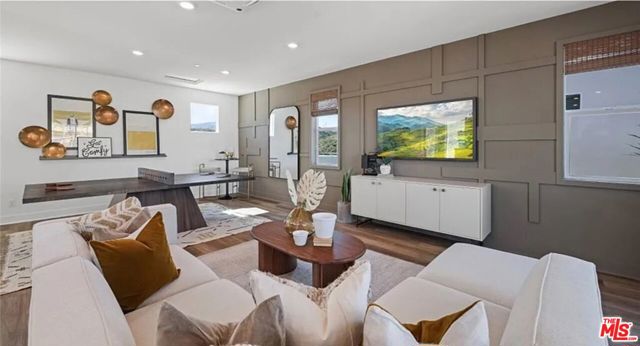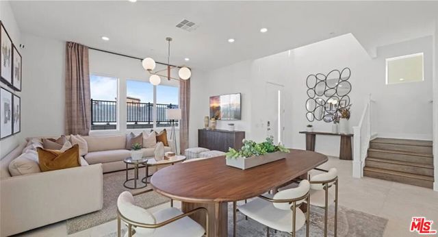 Gorgeous home is move-in ready WITH EV CHARGER IN THE GARAGE & ENERGY SAVING SOLAR PANELS! Enjoy this south facing, bright and airy 4 bed, 4.5 bath multi-level home featuring a welcoming 2 story foyer, flows to 10-foot ceilings great room with large windows, beautiful wood floors throughout, and spacious 2 1/2 car garage. Open kitchen with huge island & quartz countertops, equipped with stainless steel appliances, soft-close drawers. The first level showcases a spacious open floorplan, shared between the Great Room, kitchen and dining room. Stackable sliding glass doors lead to the California Room for effortless indoor-outdoor living and entertaining. A secondary bedroom on the main floor is situated at the back of the home along with a full bath and a large walk-in pantry. Three more bedrooms can be found on the second floor, including the luxe owner's suite. Master suite includes dual sink vanity, a large walk-in shower, a separate tub, and a spacious walk-in closet, while the other two bedrooms include its own private full bath, convenient 2nd floor laundry, lots of cabinetry for storage and kid's study area in the hallway. A versatile bonus room occupies the top level, with an adjacent covered deck which provides an ideal spot for relaxing, entertainment and enjoying the neighborhood's charm and views. Plus, its great location puts you within reach of everything you need, from shopping and dining options to parks and great schools. Just minutes away from the 5 fwy for easy commuting. Electric vehicle charger installed in the garage. Solar panels also included and already installed on the home to your benefit. Don't miss the chance to make this house your dream home!