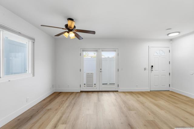 Spacious, light and bright one bedroom townhome in the heart of Golden Heights/South Park, perfect for buyers seeking style, comfort, and convenience. The main floor features an updated kitchen, dining area, and spacious family room with French doors (dog-door already installed) that opens to a private enclosed patio ideal for indoor/outdoor living and pets. Upstairs, the large primary suite includes large French doors to Juliet balcony, walk-in closet, bathroom with in-unit laundry. Dual-pane windows and air conditioning, part of the Quieter Home Program, provide comfortable living year-round. New flooring and fresh paint throughout. EV outlet and one designated parking space directly in front of the unit. Enjoy South Park’s walkable, vibrant neighborhood lifestyle with shops, cafes, restaurants, and the Grape Street Dog Park just blocks away. Easy access to downtown San Diego, Balboa Park, and major freeways makes commuting and weekend adventures easy.