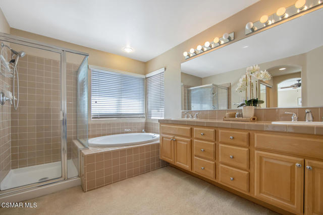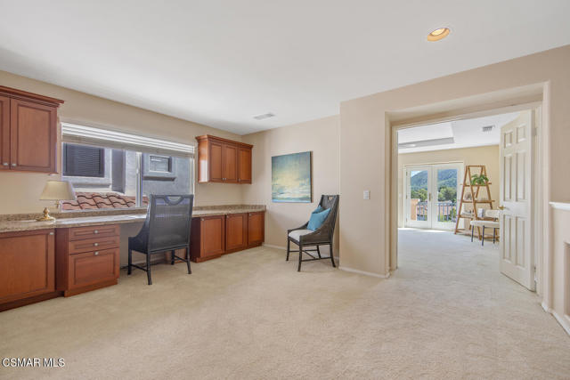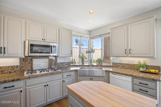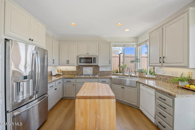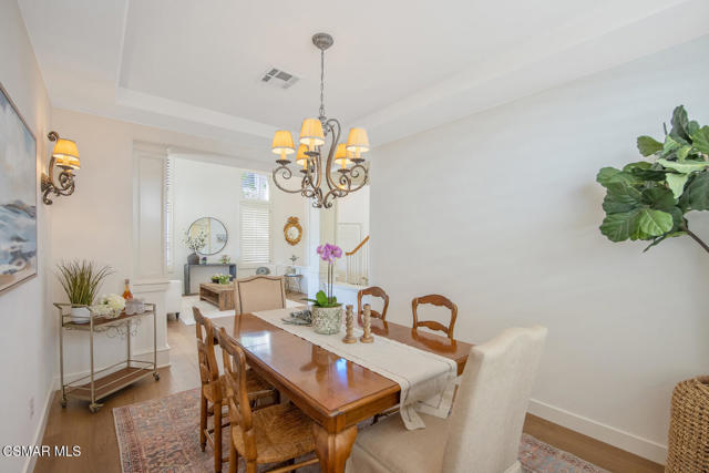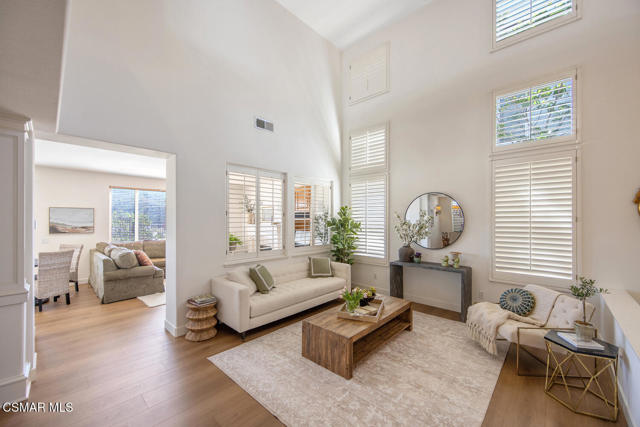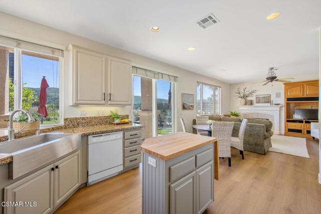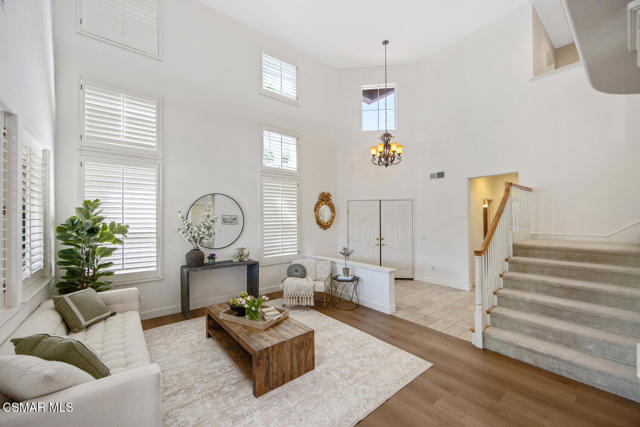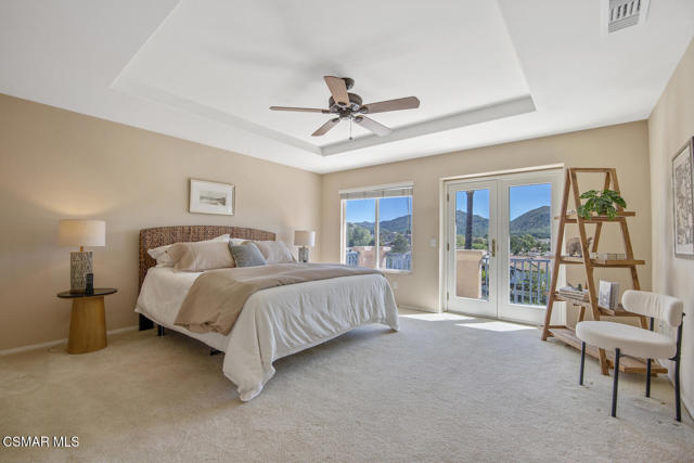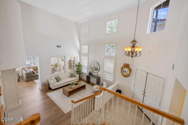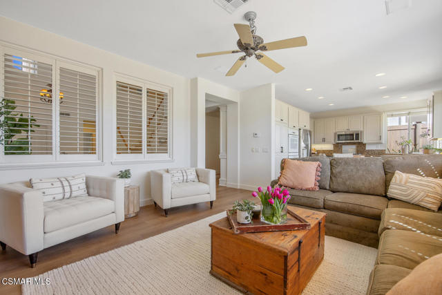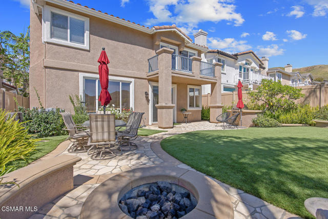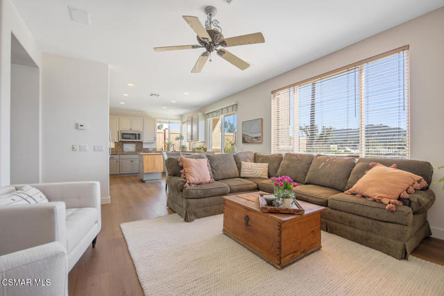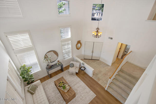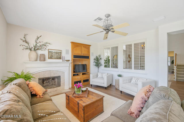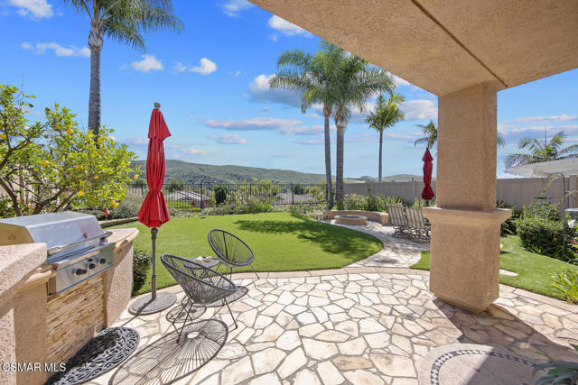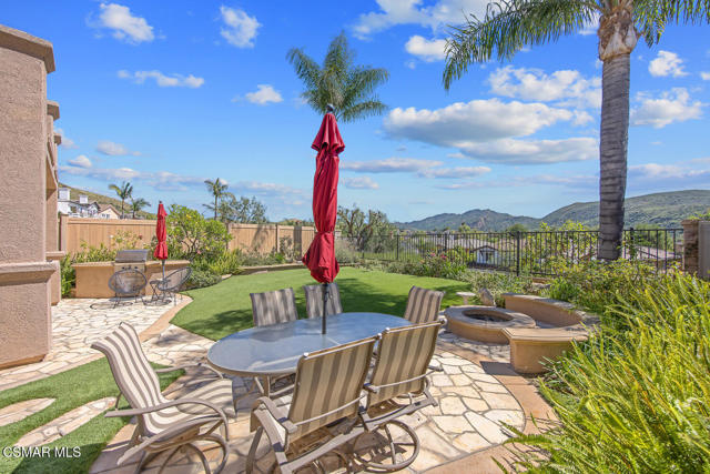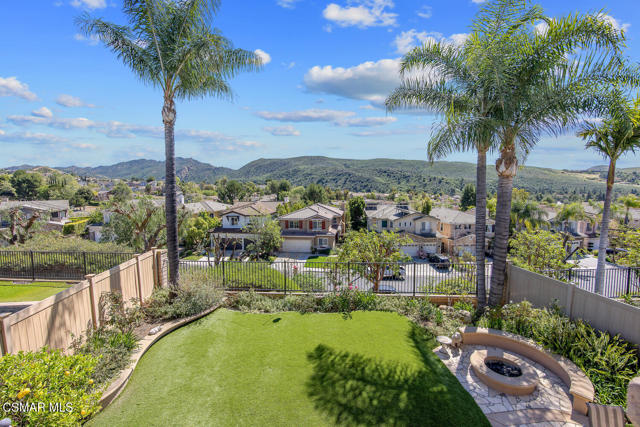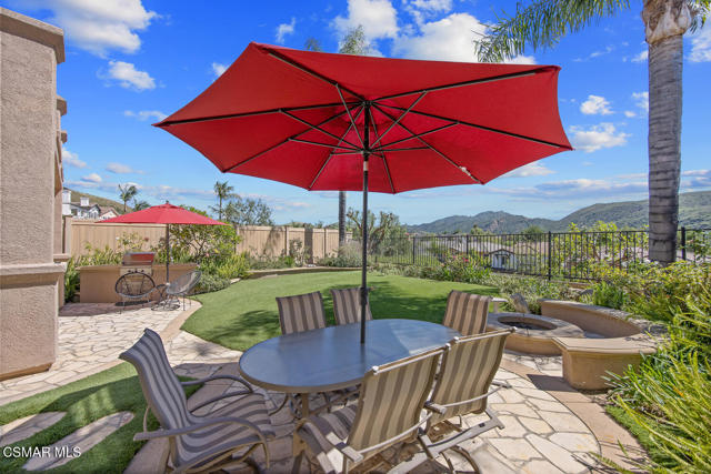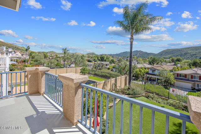 Located in the gated community of Eagleridge in Lang Ranch, this spacious 2,632 sq ft home with 4 bed/3 bath has panoramic views and a fantastic floorplan. Light and bright throughout, the home welcomes you with soaring ceilings and an open, airy feel from the moment you enter. The thoughtfully designed floor plan includes a desirable downstairs bedroom and full bathroom and a kitchen that opens to the family room. The downstairs has brand new designer flooring and fresh paint. Upstairs, you'll find three spacious bedrooms and a versatile loft perfect for a home office, study area, or playroom. The generous primary suite features wonderful mountain views, a charming balcony, TWO walk-in closets and an enormous bathroom with soaking tub and shower. Step outside to a beautifully landscaped easy-care yard, with a pretty patio, built in BBQ and fire-pit with sitting area all are ideal for relaxing or entertaining. Enjoy your morning coffee taking in the stunning views of the surrounding mountains that create a serene and picturesque setting. Additional highlights include a newer HVAC and water heater. The community includes a swimming pool and spa and the peace of mind of a gated community. This home is conveniently located near top-rated schools, scenic hiking trails, parks, and shopping.