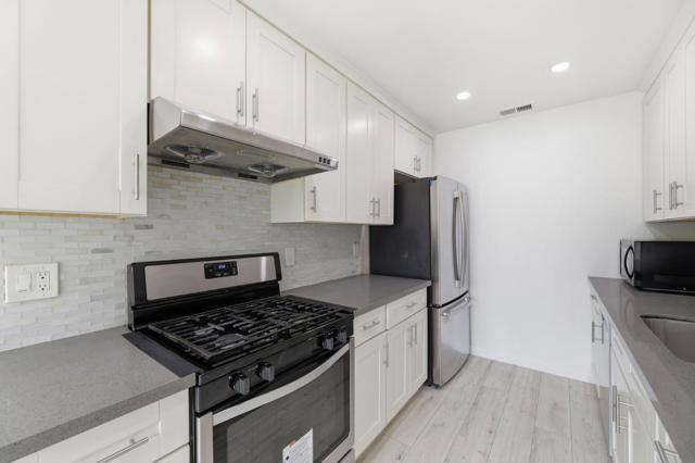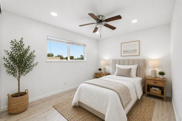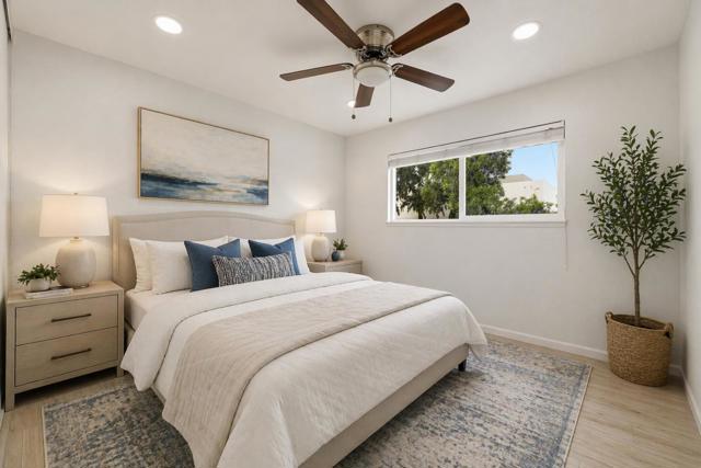 Rarely available, NorthEast-facing 3BR condo in a highly convenient location. Beautifully remodeled with new laminate flooring, recessed lighting, and fresh interior paint. The updated bathroom features a brand-new shower, walls, vanity, and closet doors, along with a custom closet system. The kitchen was remodeled in 2019, complemented by energy-efficient dual-pane windows and ceiling fans with lights throughout. Newer HVAC installed in 2021. This upstairs unit offers nice views, privacy, and a secure setting. Additional highlights include: 1-car garage + 1-car driveway parking, Extra storage room, Ample guest parking within the community. Shared laundry (only 3 neighboring units) Enjoy community amenities such as a pool and playground/park. Located within top-rated Milpitas schools: Anthony Spangler Elementary, Thomas Russell Middle, and Milpitas HS. Prime location within walking distance to shops, restaurants- just minutes to Milpitas Square, McCarthy Ranch, Great Mall, and BART. Easy access to Hwy 237, 880, 680, and 101, with a short commute to major tech companies and close proximity to San Jose Airport. HOA covers water (hot & cold) and garbage. Property is not located in a flood zone. *Virtually staged for marketing. Photos may not reflect actual size, or dimensions.