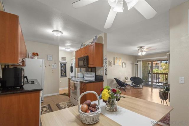 Located in a gated community, this second-floor 1-bedroom, 1-bathroom condo offers a comfortable setting with everyday convenience in San Diego. The layout makes great use of the space, featuring a well-sized bedroom with a walk-in closet. The living area flows into the dining and kitchen spaces, creating an open layout with a cozy atmosphere, while a fireplace adds warmth and character. Enjoy a direct pool view from the living room, or step out onto your private balcony—perfect for morning coffee or unwinding at the end of the day. The home is well-maintained, move-in ready, and includes an in-unit laundry area for added convenience. Conveniently located near major transit routes, shopping, and dining, this home offers easy access to everyday essentials and quick access to the 54 freeway.