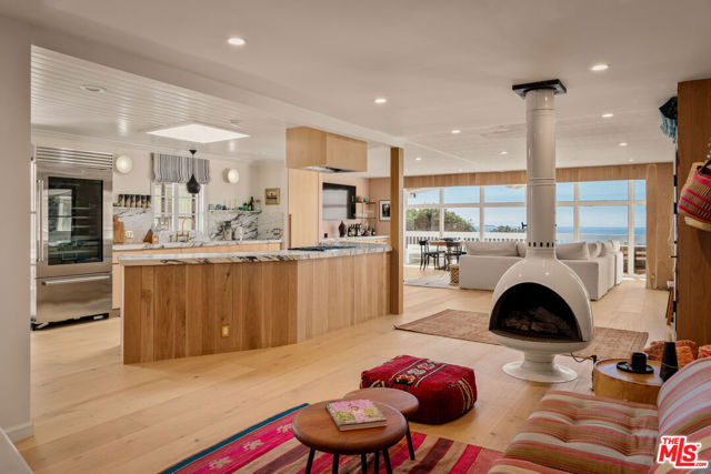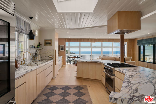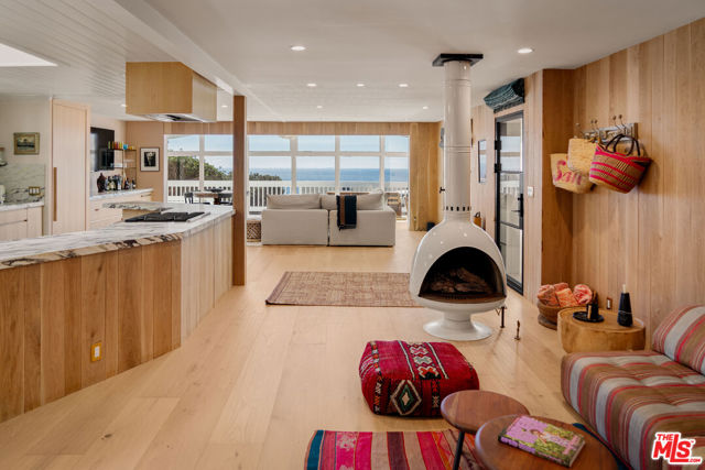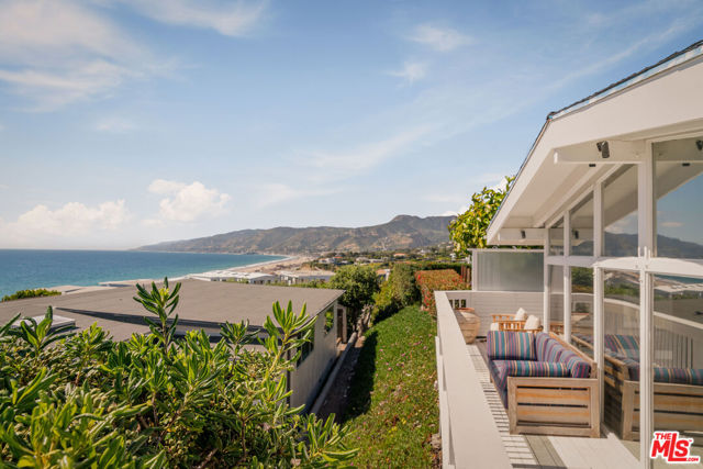 Unbeatable Ocean Views & Beachside Living in Malibu's Point Dume Club. Soak up panoramic ocean views and laid-back luxury in this tastefully reimagined end-unit nestled in the gated Point Dume Club. Tucked away on a peaceful street just moments from Westward and Zuma beaches, this home is your personal retreat on Malibu's iconic shoreline. Inside, exposed beams and walls of glass invite an abundance of sunlight. The open chef's kitchen, complete with marble countertops and top-of-the-line appliances, flows seamlessly into a dining area backdropped by some of Southern California's most spectacular sunsets. Living spaces are accented with custom built-ins and playful touches like a retro-inspired fireplace. The airy primary suite boasts a clawfoot soaking tub, while the secondary bedroom and bath offer comfort and style. As a resident of Point Dume Club, enjoy access to resort-style amenities including a sparkling pool and spa, updated clubhouse, tennis and basketball courts, playground, 24/7 security, and more. This is Malibu living elevated where breathtaking views, thoughtful updates, and prime beach access come together in perfect harmony.
