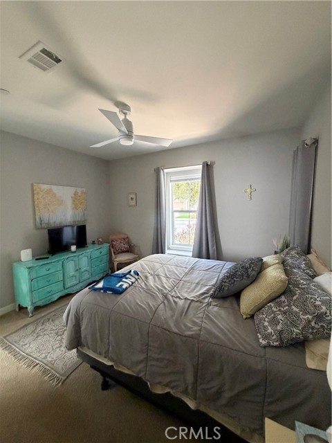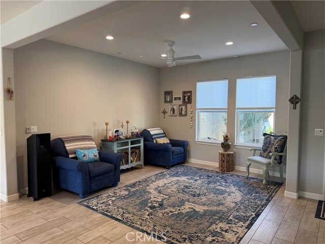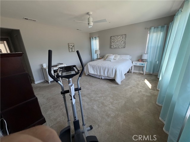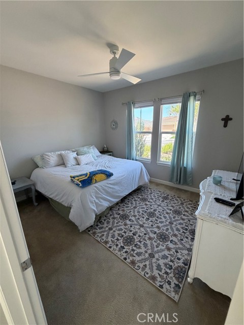 This stunning 4-bedroom, 2.5-bath home, spanning nearly 2,700 square feet, is located in the desirable Heritage Lake neighborhood. Upon entering through the electronic key lock, you are greeted by a spacious, bright great room featuring luxury vinyl tile flooring. The kitchen boasts white shaker cabinets, stainless steel appliances, quartz countertops, and a large island ideal for meal preparation and entertaining, complemented by both a gas stovetop and electric oven. The great room is designed for comfort, equipped with a large ceiling fan and a gas fireplace, and is fully wired for an entertainment system. The home includes both a formal dining room and a breakfast room, providing flexibility in furnishing. The laundry room is practical, featuring a deep sink, cabinets, and ample shelving for storage. The three-car garage includes a workshop area with a workbench and additional storage. Outdoor living is enhanced by a large California room with a fan, leading to a beautifully landscaped backyard that requires low maintenance. The patio is spacious enough for a barbecue setup, and the yard includes designated areas for games like bocce ball and horseshoes. The scenic views from the backyard include neighborhood landscaping and distant mountains, with seasonal highlights such as snow-capped peaks in winter and hot air balloons in spring. The home is equipped with custom underground drainage, new rain gutters, and a soft water system that provides purified water at every faucet, including an alkaline water option in the kitchen. The master suite features a large walk-in closet, while all bedrooms are carpeted for comfort. The hall bath is designed for efficiency with a dual sink vanity, and the master bath includes a soaker tub and shower with a bench. The Heritage Lake community offers a private lake with a walking path, catch-and-release fishing, and non-motorized boating options. Residents can enjoy an Olympic-size pool overlooking the lake, a splash park, and playground facilities. Additional amenities include pet-friendly walking paths throughout the neighborhood, making it an ideal location for families seeking a comfortable, move-in-ready home with extensive amenities. Heritage Park, located just a three-minute walk away, offers well-lit facilities for evening use. The park includes vibrant basketball, pickleball, and tennis courts, along with two large covered patios suitable for barbecues, picnics, and gatherings.