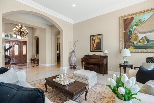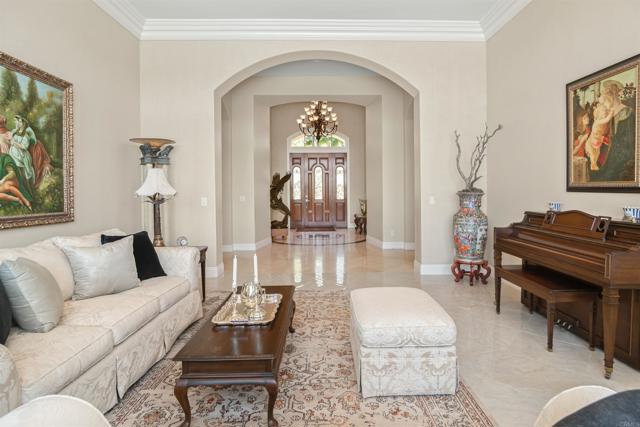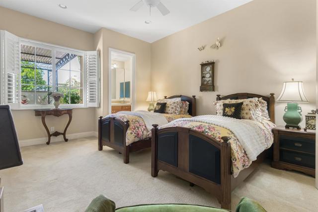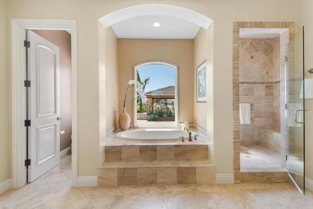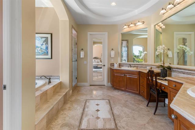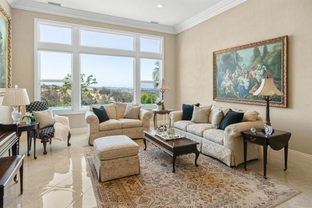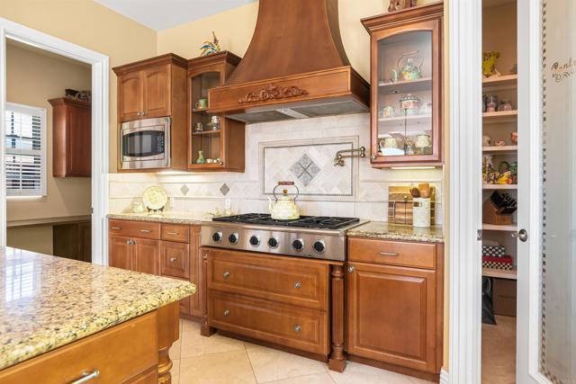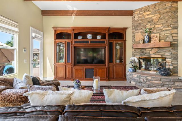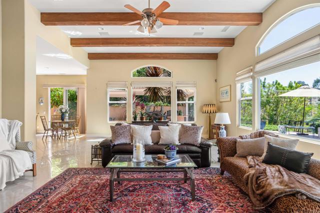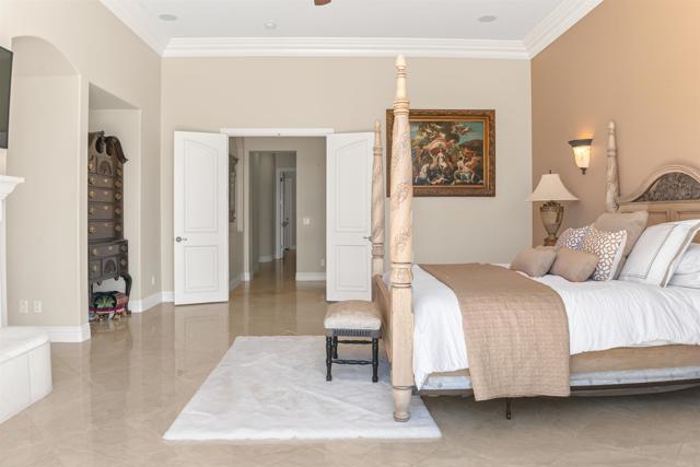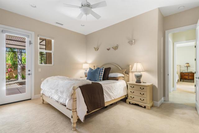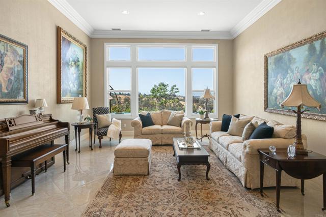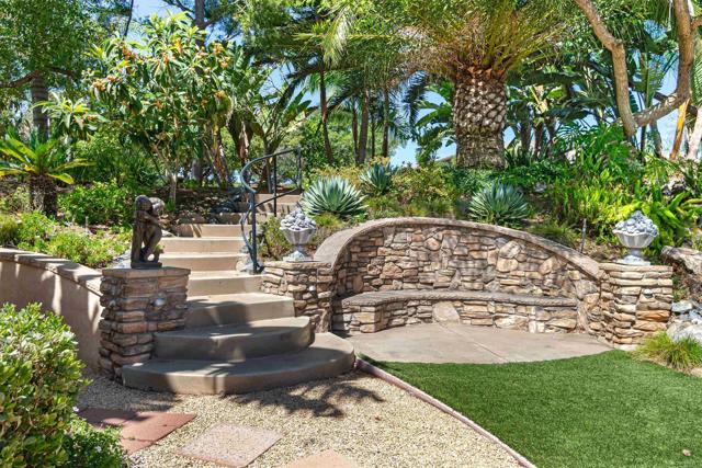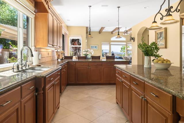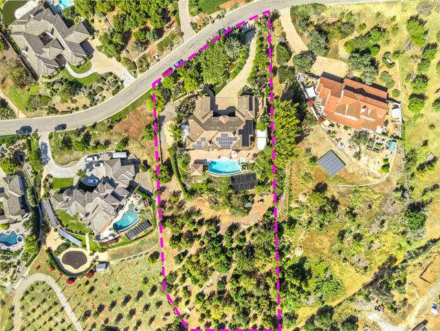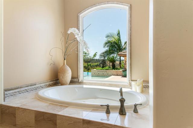 Luxury, privacy, and breathtaking views define this single-story 4,400 sq. ft. estate in the prestigious gated community of Château Belle Vue. Set on 2.2 serene acres, this Mediterranean-inspired residence welcomes you with a private curved driveway, custom paver courtyard, and lush, meticulously landscaped grounds. Inside, soaring ceilings, wood-beam accents, and an open, sun-filled layout create an atmosphere of elegance and ease. The gourmet kitchen features high-end stainless steel appliances, a 6-burner range with pot-filler, granite countertops, an oversized island, and a walk-in pantry. The adjoining living spaces offer seamless indoor-outdoor flow, perfect for both everyday comfort and grand entertaining. Custom window coverings, including plantation shutters and designer roller shades, enhance both style and privacy throughout the home. The luxurious primary suite provides a peaceful retreat with its own fireplace, a spa-style bath, soaking tub, dual vanities, and a spacious walk-in closet. All additional bedrooms include private en-suite baths. Step outside to your own private resort: an infinity-edge pool, expansive patios, and a pergola-covered outdoor kitchen/BBQ. Two additional covered pergola sitting areas offer the perfect spots to unwind, enjoy the breeze, and take in the stunning sunset views. The grounds also feature an avocado grove, citrus trees, solar, and a 4-car garage. Additional highlights include a waterfall with a lily pond, a private entry gate, and a separate grove service gate, enhancing both convenience and seclusion. All of this is located within just 10 miles of some of San Diego’s most beautiful beaches, offering the perfect blend of country tranquility and coastal lifestyle. A rare opportunity to own a true Bonsall luxury estate, tranquil, private, and crafted for exceptional living. Additional professional photos coming soon!