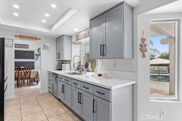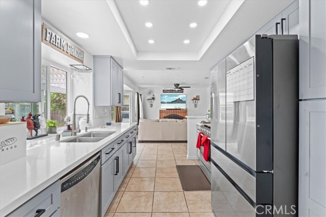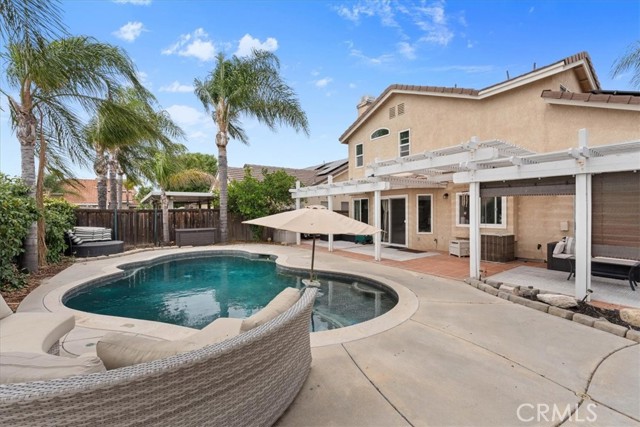 Welcome to 30569 Meadow Run in the heart of Menifee—where comfort, style, and outdoor living come together. This home features a brand-new remodeled kitchen, thoughtfully designed with modern finishes and functionality that make it perfect for both everyday living and entertaining. The main bedroom offers a spacious walk-in closet, providing ample storage and convenience, while the bathroom features dual sinks, adding both style and practicality for daily living. Ceiling fans throughout the home enhance comfort and energy efficiency year-round. A standout detail is the downstairs bathroom featuring custom shipwreck wood accents, adding a unique, coastal-inspired touch that sets this home apart. Step outside to your private backyard oasis, complete with a beautiful pool and a newer heater powered by fully paid-off solar, giving you energy efficiency and year-round enjoyment. The front yard features a mature fruit tree, offering both charm and the added bonus of fresh, homegrown produce with a nice green grass area in a cul-de-sac. Ideally located close to shopping, dining, and everyday conveniences, this home offers the perfect blend of location and lifestyle. Whether you're hosting summer gatherings or enjoying a quiet evening at home, this property is ready to deliver. Don’t miss your chance to make this move-in-ready home yours!