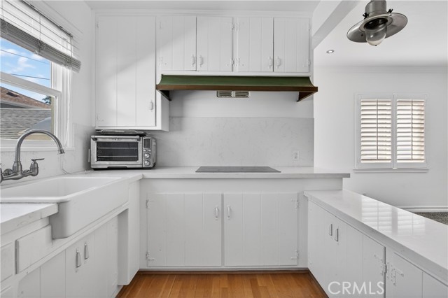 Enjoy classic coastal living in this beautifully maintained 1-bed, 1-bath upper unit perched above the garage in a quiet beachside neighborhood. Just steps from both the bay and the ocean, this light-filled retreat offers the perfect blend of vintage charm and modern comfort, with easy access to Lido Village, top-rated restaurants, and local entertainment. Inside, the open living area features warm natural light and original character details that create an inviting, relaxed atmosphere. The classic kitchen includes shaker-style cabinetry, stainless steel appliances, ample counter space, and everything needed for effortless everyday cooking. The spacious bedroom boasts vaulted ceilings, exposed beams, recessed LED lighting, and a bright, airy feel. The bathroom is designed with a clean, coastal aesthetic, featuring white subway tile and updated fixtures. Additional highlights include plantation shutters, crown molding, and convenient laundry room. Parking includes one shared garage space, offering secure and convenient storage for your vehicle or beach gear. Water, trash, sewer, premium cable, and electric are all included, providing exceptional value and ease. This upper-level beach cottage is a rare opportunity to live steps from the sand in one of the most desirable coastal communities.