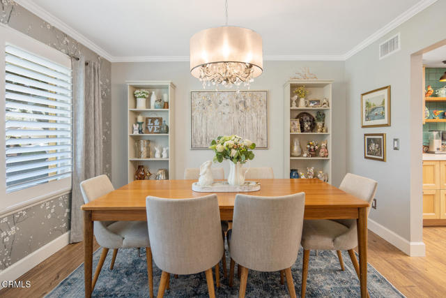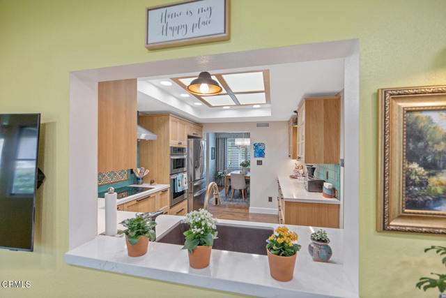 Welcome to one of the most exceptional and beautifully upgraded homes in Leisure Village! This stunning Amalfi model has been thoughtfully reconfigured and redesigned, offering a rare combination of style, function, and high-end finishes that truly set it apart.With 3 bedrooms or 2 bedrooms plus a den, this versatile floorplan includes a spacious primary suite with a custom walk-in closet, a remodeled kitchen with added pantry, a bright sunroom, and a large laundry room with abundant storage--features not typically found in this model.From the moment you enter, you'll notice the impeccable attention to detail and designer-quality finishes throughout. Upgrades include luxury vinyl plank flooring, high baseboards, dual-pane windows and slider doors, plantation shutters, crown molding, chair rails, smooth ceilings, updated LED lighting, and a newer HVAC system for year-round comfort.The gorgeous, fully remodeled kitchen is a true showstopper, featuring custom cabinetry, quartz countertops, stainless steel appliances, and a skylight that fills the space with natural light. The dining room flows seamlessly into the spacious living room with vaulted ceilings, creating the perfect setting for entertaining or relaxing in style.Both bedrooms are generously sized and feature additional closets with custom built-ins. The bathrooms have been highly upgraded with beautiful vanities, designer tile, and updated lighting, including a stunning walk-in shower.Step outside to your covered patio overlooking a peaceful greenbelt. The direct-access garage features an epoxy floor, and the home also enjoys a private driveway and a quiet cul-de-sac location.Leisure Village is Camarillo's premier 55+ guard-gated community offering an incredible lifestyle with a 24-hour guard gate, golf course, pool & spa, fitness center, tennis, pickleball, and countless clubs and activities. HOA dues include water, sewer, trash, cable TV, internet, landscaping, and exterior maintenance.With its incredible upgrades, thoughtful reconfiguration, and stunning decor--why pay a decorator when you can move right in? Don't miss this rare opportunity!