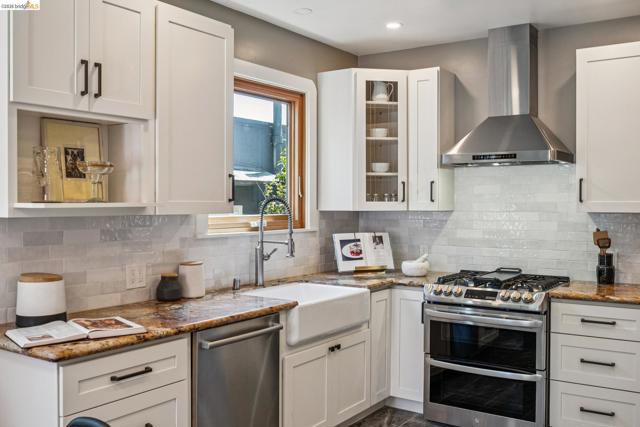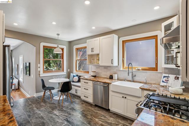 This house lives BIG and the lot lives BIGGER! Expanded 1920s Spanish bungalow on a beloved tree-lined block, known for its community feel and EZ proximity to Loard’s Ice Cream, Ghost Town Brewing, and upcoming Cafe Santana. A recent two-story addition expands the home to 4 bedrooms and adds a spacious family room. Original details—including a tiled fireplace, built-ins, & refinished hardwood floors—preserve its character. Light-filled living room flows into comfortable dining room and updated kitchen w/ granite countertops, SS appliances, double ovens, farmhouse sink, pantry, & breakfast banquette. Sunken family room features high ceilings, bamboo floors, & French doors opening to flowing deck & expansive backyard. Main level includes 2 bedrooms & remodeled bath. Upstairs offers 2 bedrooms and a bath, including a large primary with ample closet space & Bay views. Bonus Lower level includes laundry, rumpus room, and storage. Private yard w/ flagstone patio, level lawn area, detached bonus structure w/ covered patio, fruit trees and even ample space for a detached ADU! Well maintained and extensive upgrades including dual-pane windows, 200 amp panel, romex electrical, copper plumbing, & new furnace. Super convenient to parks, schools shopping, hiking trails and Highways 580 & 13.