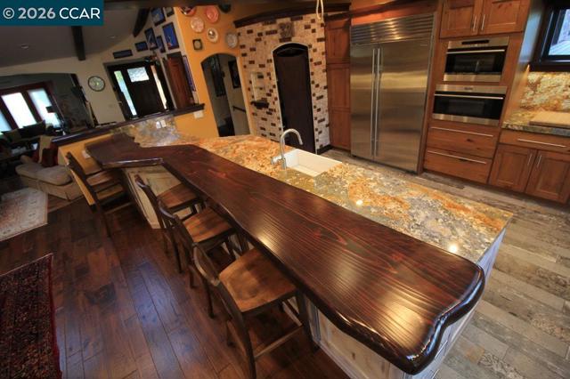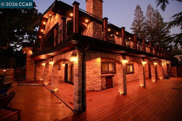 More photos soon! Exquisite home lovingly remodeled by the owners in 2019. Nestled on beautifully landscaped .6 acre in rolling hills of Alamo. Timeless charm of Tuscany, boasts 6BD/3BA, 3696 sq ft & captures the essence of old-world w/ modern indulgence. Gourmet kitchen w/ high end appliances, expansive living areas w/ wood beams, 3 fireplaces & skylights. Primary has bath w/ jacuzzi tub, sauna, walk-in shower, dbl shower heads, dbl sinks & bidet. Primary & guest bedroom - access to balcony overlooking the serene grounds & pool area. This smart home features solar (owned), security system & lighting you can program from your phone. Hardwood & tile floors throughout. Tuscan architecture, w/ exquisite stone & ironwork. Expansive multi-level decks, spectacular pool, spa, waterslide w/ stone craftmanship & cascading waterfall. Outdoor kitchen w/ stone counter, grill/sink and gas fire pit deems perfect for daytime entertainment & evening gatherings. Stone stairs or iron spiral staircase takes you to pool/guest house w/ full bath, loft & outdoor shower. Speakeasy dwelling w/ sink/fridge & ample space for wine bottles, attached to a 2nd garage w/wisteria lined & gated driveway. Too many details to list! Located w/in 10 mins from Danville, Walnut Creek, HWY 680 & Top rated schools.