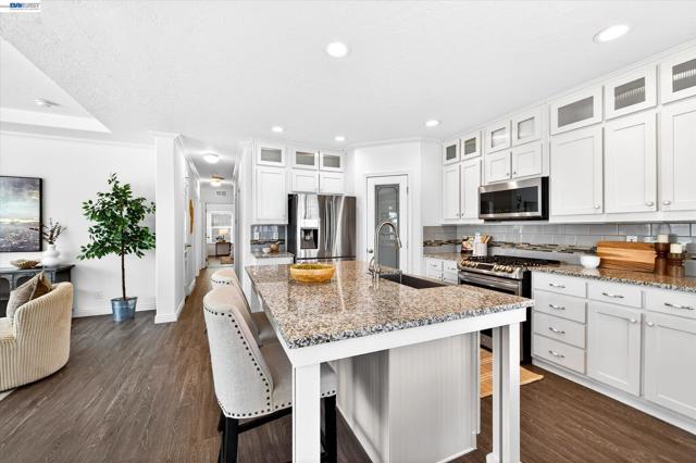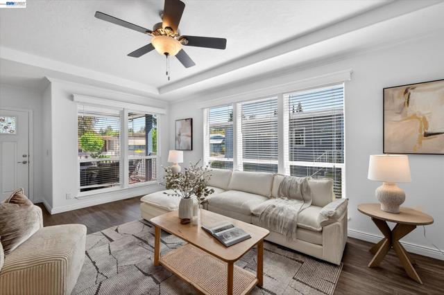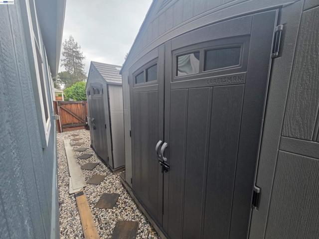 Welcome to this beautifully maintained, newer manufactured home in the highly desirable Hacienda 55+ senior community. Offering 1,431 square feet of bright and airy living space, this three-bedroom, two-bathroom residence perfectly blends modern convenience with a relaxed lifestyle. The heart of the home is the chef-inspired kitchen, featuring elegant granite countertops that extend into the bathrooms for a cohesive, high-end feel. High-quality stainless steel appliances and an open layout make this space ideal for both daily living and entertaining. Outdoor living is a primary highlight, featuring an inviting front porch with rolling sunshades and a private rear patio. Beyond the aesthetic appeal, functional upgrades provide lasting peace of mind, including professionally installed earthquake bracing, new fencing, and the convenience of electrical outlets in the carport, front porch and one of the three storage sheds. The Pleasanton Hacienda community offers a vibrant social atmosphere with a pool and clubhouse, all while being positioned just 1.5 miles from historic Downtown Pleasanton’s premier dining and boutique shopping. Don't miss the opportunity to own this move-in-ready retreat. Fireplaces: NO