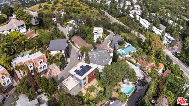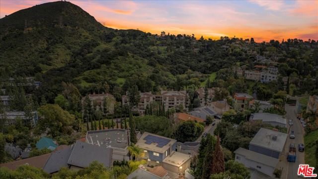 This sleek modern treehouse floats beside a majestic pine tree capturing serene hillside views in the coveted Hollywood Manor enclave. Sunlight pours into the open-concept main level where living, dining and kitchen spaces flow seamlessly around an elegant fireplace ~ an inviting setting for both unwinding and entertaining. Rich walnut hardwood floors, high-end windows and doors & organic, thoughtfully curated finishes throughout create an immediate sense of calm with a distinctly hip vibe. Expansive sliding glass doors open to a private balcony perfect for savoring quiet sunrises solo or soaking in the golden-hour light with friends. The chef's kitchen blends polished concrete counters with top-tier stainless steel appliances, a beverage fridge, and striking Italian-designed cabinetry for an effortless, functional & stylish aesthetic. Upstairs, three light-filled bedrooms share a cheerful mid-century bath adorned with sculptural vintage tile for a subtle touch of nostalgia. A second balcony offers an elevated vantage point over the charming neighborhood nearby the best of Hollywood including Universal and Warner Bros. Studios, the Hollywood Bowl, Lake Hollywood and Griffith Park. An attached two-car garage with EV charger provides direct interior access after a quick run down to the Toluca Lake Village. Recent upgrades include a newer roof, water heater, main sewer line & solar panels ~ making this cool modern nest plug & play ready.