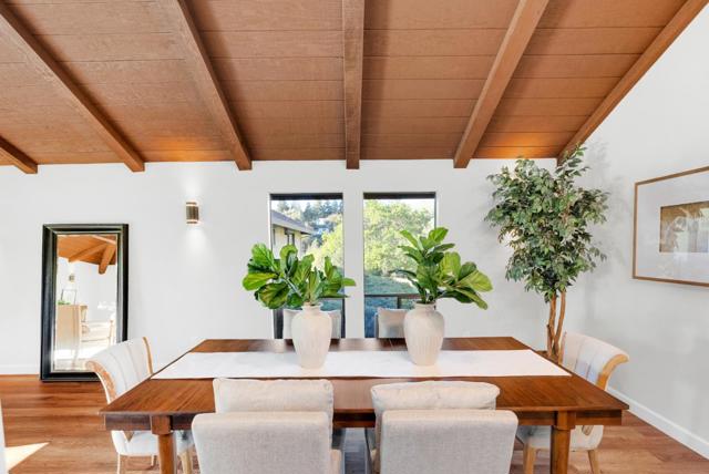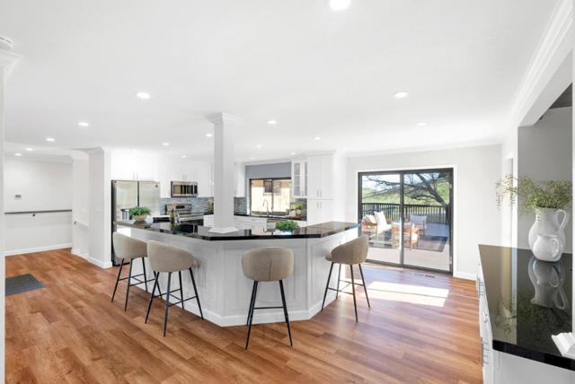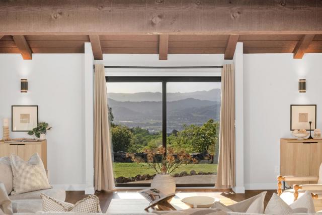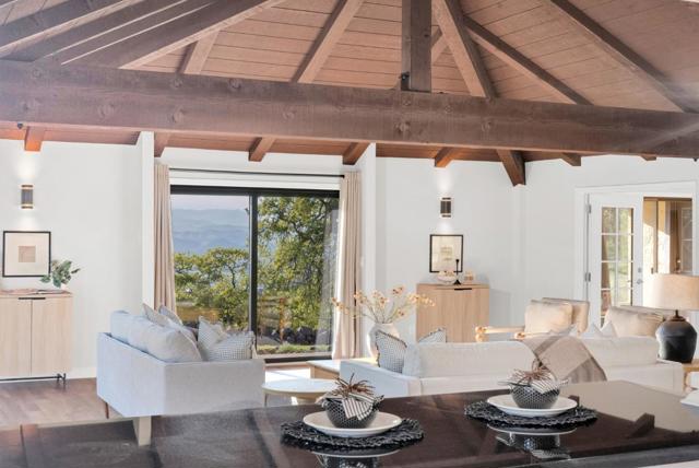 Perfectly positioned on 10 breathtaking acres in the highly sought-after Rancho Robles gated community, this remarkable property offers an extraordinary blend of privacy and natural beauty. The 3,488 sq/ft home is complemented by a 1,100 Sq/ft finished walkout basement, perfect for a gym, theater, studio, or workshop (not counted in the total square footage). Surrounded by open space with sweeping mountain views, the beautifully updated home captures stunning scenery in every direction. Grand vaulted open-beam ceilings and expansive picture windows fill the home with natural light. The Chef's Kitchen includes custom white shaker cabinetry, stainless steel appliances, and a spacious two-tiered island ideal for entertaining. The expansive primary suite enjoys serene hill views and a spa-inspired bathroom with a frameless shower and dual shower heads. A thoughtfully designed layout features two separate wings, ideal for guests or multigenerational living, with a second living area, full kitchen, two bedrooms, and a remodeled bathroom. A private hiking trail winds through the property, creating a rare connection to the surrounding landscape. Located near open space and Harvey Bear Ranch County Park, Rancho Robles offers a peaceful lifestyle defined by privacy and awe-inspiring views.
