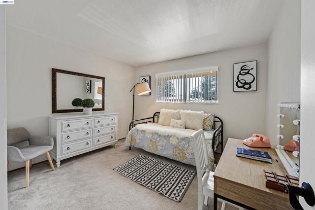 Nestled within a beautifully maintained greenbelt community surrounded by mature redwood trees, this move-in ready townhouse offers comfort, convenience, and lifestyle. This home features newer flooring throughout the main living areas and fresh interior paint that creates a bright, modern feel. Natural light fills the spacious living room, providing an inviting atmosphere for both everyday living and entertaining. The open dining area flows seamlessly into the kitchen, which includes breakfast bar seating and easy access to the private fenced patio. The outdoor patio offers a perfect setting for relaxing or hosting. Picture summer evenings under the open sky, enjoying dinner outdoors while the scent of redwood trees drifts through the air. Upstairs, both bedrooms are generously sized. The primary bedroom offers ample closet space and a peaceful retreat at the end of the day. The full bathroom is well maintained, and the convenient half bath downstairs serves guests comfortably. A dedicated indoor laundry room adds everyday convenience and additional storage options. The home includes two deeded parking spaces, located just off the patio. Zoned to top-rated schools, close to Fremont Hub, Whole Foods, Trader Joe's, Lake Elizabeth, the best restaurants, and trails. Don't miss it!