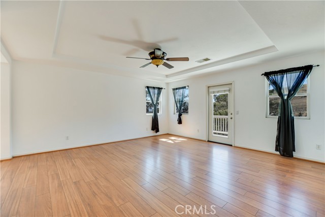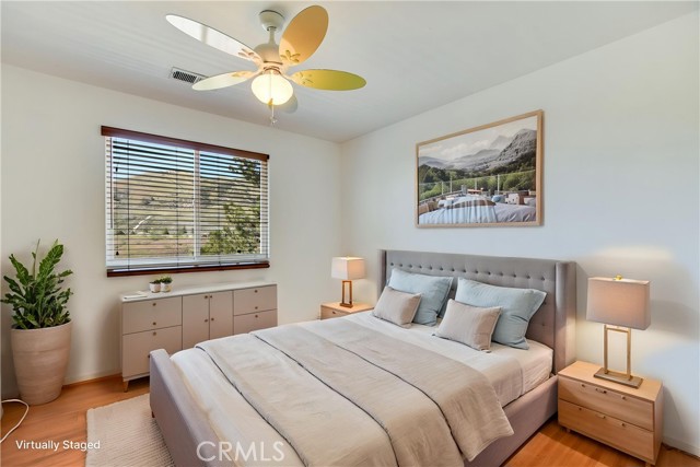 This floor plan is in high demand in the Chapman Heights Community; this home has five bedrooms, two full baths and a three-quarter bath. West-facing back balcony is off the primary bedroom and bathroom, for viewing the sunsets; Jack 'n Jill bath to serve three other bedrooms upstairs. The front bedrooms have access to the east-facing balcony to watch the sunrise. There is a bedroom downstairs with access to a 3/4 bathroom. The living room has a high ceiling and family room, adjacent to the kitchen, has a fireplace; this is the heart of the home to gather your family and friends around. The kitchen has quartz countertops, double ovens and a butler pantry with lots of storage. The yard in the back is low-maintenance artificial turf. There is golf available for the golfer in you. Come make this your forever home.