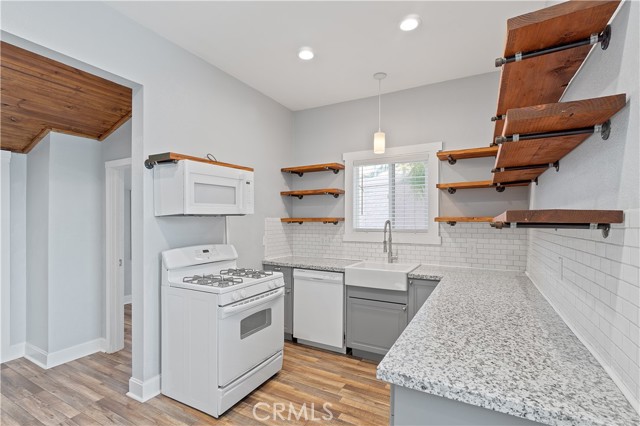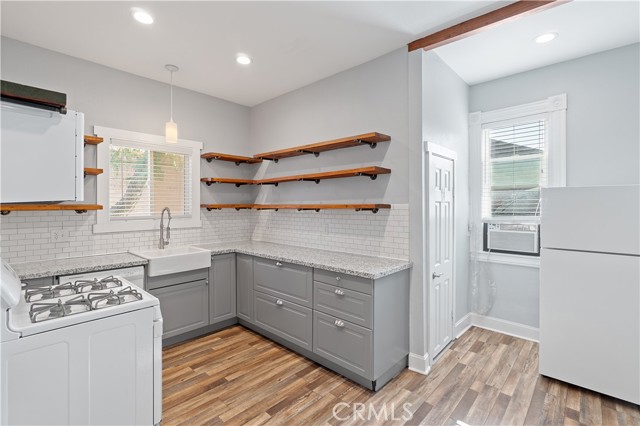 Charming 2-Bedroom Downstairs Apt Near Downtown Riverside! Living Room and Kitchen which includes Stove/Oven (gas), Refrigerator, Microwave, and Dishwasher. Vinyl Plank Flooring throughout the apartment, Window AC Unit, and Wall Furnace. Shared Coin-operated Laundry Facilities On Site, and a Front Deck and Shared Fenced Backyard Area. Street Parking. Water and Gardening are Provided! Will consider 1 Cat.