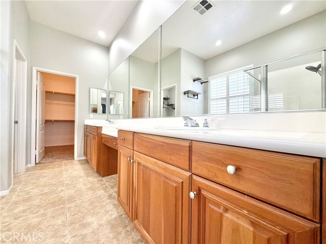 Welcome to this highly upgraded 3-bedroom SINGLE STORY home located in Winchester, CA. with fresh exterior paint, this home offers eye-catching curb appeal from the moment you arrive. As you enter through the front door, you’re immediately drawn to the designer tile flooring that flows seamlessly throughout the main living areas. Just to the left of the entry, you’ll find two guest bedrooms featuring brand new carpet, conveniently situated with a full bathroom in between. Continuing down the hallway, the home opens up to a beautifully upgraded kitchen and spacious living area. The kitchen is a true centerpiece, showcasing a massive island with a sink and ample seating space, granite countertops that extend to the cabinetry, and a walk-in pantry for added storage. Adjacent to the kitchen is the open living room, complete with a gas-burning fireplace—perfect for cozy nights in. Further down the hall, you’ll find a built-in office nook, a dedicated laundry room, and the primary suite. The primary bedroom offers generous space and leads into a well-appointed bathroom featuring dual sinks, a soaking tub, a separate shower, and an oversized walk-in closet. Venture outside to enjoy the expansive backyard, complete with fresh mulch, grass, and thoughtfully placed trees—offering endless possibilities for relaxation or entertaining. This is a home you won’t want to leave. Schedule your private showing today before it’s gone!