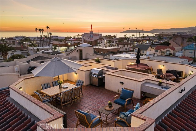 Stunning Mediterranean-style coastal condo just moments from the beach, pier, and the heart of Pismo Beach’s dining and shopping scene. Whether you’re looking for a full-time residence, a luxurious getaway, or an income-producing property, this home offers exceptional flexibility as a licensed short-term vacation rental. The 2-bedroom, 2.5-bath main residence (1,769± sq ft) is thoughtfully designed and includes a private attached 1-bedroom, 1-bath casita with kitchenette, perfect for guests, extended family, or additional rental income. A spacious two-car garage provides direct access, while a separate street-level entrance enhances privacy and versatility. Inside, warm wood flooring flows through the open-concept living and dining areas, complemented by a well-appointed kitchen featuring stainless steel appliances and quality finishes. A powder room completes the main level. Upstairs, the primary suite offers a peaceful retreat with a spa-inspired en-suite bath. A second bedroom includes its own full bath and between the two rooms is an in-unit laundry. The ground-level casita provides true separation with its own entrance and kitchenette. At the top, a show-stopping rooftop deck captures sweeping 180-degree ocean views, ideal for entertaining or simply enjoying the iconic Pismo sunsets, complete with BBQ and outdoor seating areas. Combining coastal elegance, income potential, and an unbeatable location, this property embodies the very best of Central Coast living.