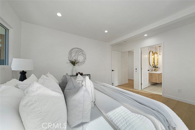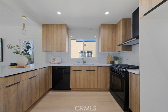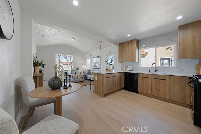 Your Private Retreat in the Heart of West Adams. Tucked into one of Los Angeles’ most coveted neighborhoods, this light-filled sanctuary blends timeless character with a fully modernized interior. The living room sets the tone with elegant barrel ceilings and an oversized picture window, creating an airy, welcoming space that instantly feels like home. This fully permitted 3-bedroom, 2-bath renovation has been thoughtfully reimagined from top to bottom. The primary suite features a true en-suite bath with a sleek double vanity and contemporary finishes. New luxury vinyl plank flooring flows throughout the home, complemented by designer bathroom tile, modern fixtures, and convenient in-unit laundry hookups. The brand-new kitchen anchors the home with natural oak cabinetry, quartz countertops, a peninsula island with bar seating, and premium appliances—including a 4-burner stove with griddle, range hood, and dishwasher—perfect for everyday living and entertaining alike. Major system upgrades include all-new electrical wiring, upgraded electrical panel, new plumbing, recessed lighting throughout, double-paned windows, and fresh interior and exterior paint for true move-in peace of mind. Out back, enjoy your own private patio and a detached garage with generous clearance—ideal for two vehicles or potential RV parking. A striking front entry door completes the home’s polished curb appeal. Located moments from West Adams favorites—cafés, dining, fitness studios, and social hubs—and with easy access to the Expo and Crenshaw/LAX lines, this home offers the perfect balance of neighborhood charm and urban connectivity. An absolute must-see.
