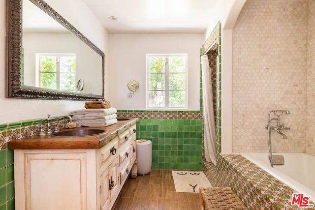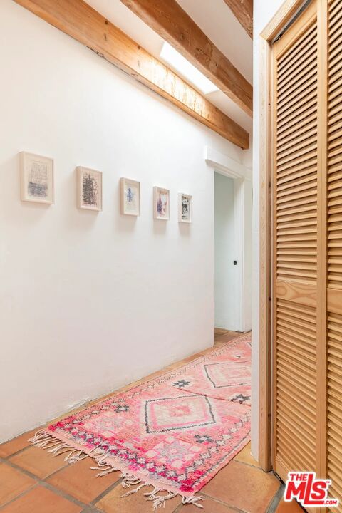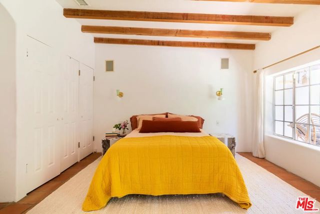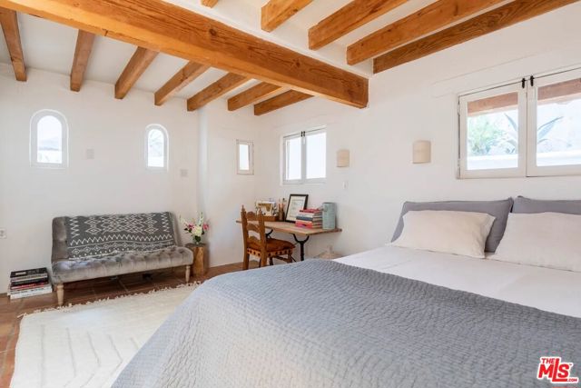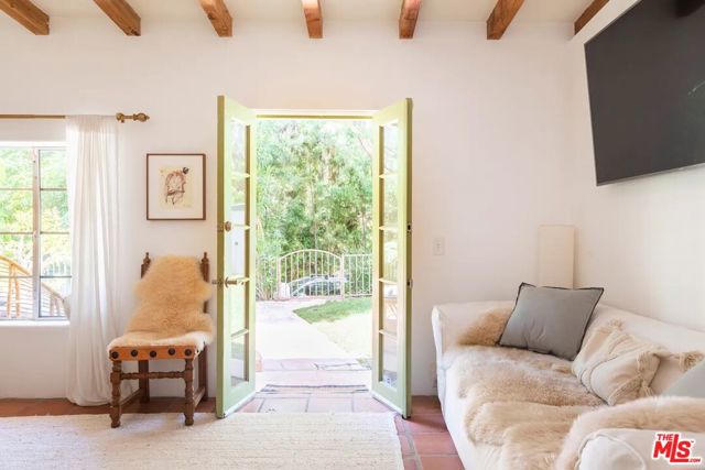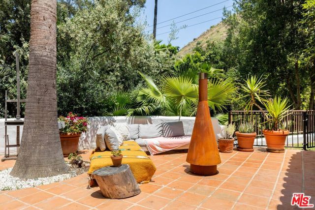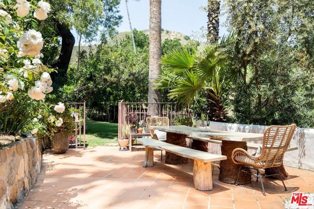 Light-filled Spanish-style villa nestled in the hills of Topanga Canyon. A true designer's retreat, this private property showcases exposed wood-beamed ceilings, abundant natural light, and seamless indoor-outdoor flow with French doors opening to a Saltillo-tiled patio ideal for entertaining. Spacious grassy yard with mature landscaping including olive, citrus, fig, pomegranate, and passion fruit trees. Gourmet kitchen with high-end appliances and generous eat-in area. Primary suite features a private patio and spa-like bath. Additional bedrooms are bright and versatile, suitable for family, guests, or home office use. Two separate entrances, private road, and ample parking provide added privacy and convenience. Close to scenic hiking trails, approximately 15 minutes to the beach, and moments from the charm, culture, and natural beauty that make Topanga so special. Easy access to Calabasas shopping, dining, and top-rated public and private schools. A rare opportunity to enjoy peaceful canyon living with city convenience.