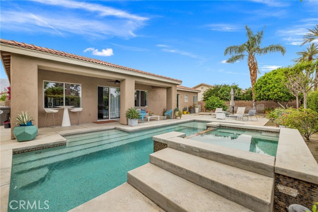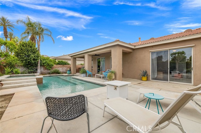 Welcome to 35756 Calle Sonoma, located in the highly sought after, gated community of Aldea. This well-maintained single-story home offers approximately 1,751 square feet with 3 bedrooms and 2 bathrooms. High ceilings and abundant natural light create an open, airy feel throughout the home. Tile flooring runs throughout the entire home, creating a clean and seamless look from room to room. In the living room, a cozy fireplace creates a warm focal point and the space opens comfortably to the main living areas. A large kitchen offers upgraded appliances, a spacious island, ample cabinetry, and an open layout that flows into the main living areas, making it ideal for everyday living and entertaining. Serving as a relaxing retreat, the primary bedroom features an en-suite bathroom, a walk-in closet, and direct access to the backyard. Two additional bedrooms provide flexibility for family, guests, a home office, or seasonal visitors. An interior laundry room and attached two-car garage complete the home. Outdoors, the backyard is set up for enjoying the desert lifestyle, featuring a covered patio and a saltwater PebbleTec pool and spa with a Baja step—perfect for relaxing, cooling off on warm desert days, or entertaining under the desert sky. Low-maintenance landscaping and outdoor lighting create a private and inviting outdoor setting. Aldea is a gated community in the Coachella Valley with convenient access to Palm Springs, golf, restaurants, shopping, and the many events and festivals the desert is known for. More photos coming soon.