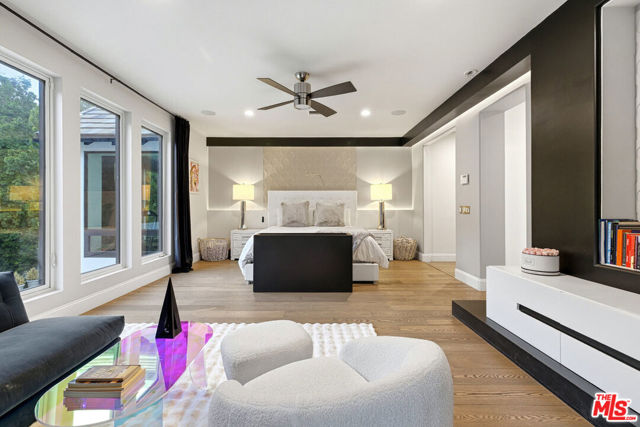 Welcome to this breathtaking modern estate, located in the prestigious guard-gated community of The Oaks of Calabasas. Perfectly positioned on a cul-de-sac along one of the community's most desirable streets and secured behind its own private gate this compound captures the essence of elevated California living, where contemporary design, resort-style amenities, and total privacy converge. From the moment you arrive, the residence impresses with its refined architecture, lush landscaping, and effortless flow between indoor and outdoor spaces. Designed for both grand entertaining and intimate evenings at home, the property features a private sports court, in-ground trampoline, pool, spa, fire bowls, sprawling wrap around lawn, dog run, and a fully equipped outdoor kitchen with seating and BBQ creating a true resort experience in your own backyard. This lot is truly one of a kind. Inside, expansive open-plan living areas are bathed in natural light, showcasing curated finishes and sleek detailing throughout. The private theater provides the perfect retreat for movie nights, while multiple sets of doors open to the backyard, blending sophistication with relaxed, livable design.The state-of-the-art gourmet kitchen, the heart of this home, features waterfall-edge granite countertops and top-of-the-line appliances, including a built-in coffee system, two dishwashers, and an extra-large refrigerator and freezer set. It opens seamlessly to the family and living area perfect for large gatherings. A breakfast area and separate sit-down bar/juice station add to the home's functionality and charm. A spacious ensuite bedroom on the main level is ideal for guests or multigenerational living. There's also an informal living space with a full bath and its own separate kitchen complete with dishwasher and ice machine. Upstairs, the primary suite serves as a tranquil escape, complete with a spa-inspired bathroom featuring a dry sauna, oversized shower, soaking tub, and custom dressing area. French doors open to reveal fresh air and garden views, inviting peace and calm into every moment.Enjoy workouts in the upstairs gym, with floor-to-ceiling glass overlooking your perfectly landscaped yard. There's even a play/game loft upstairs, offering another inviting gathering area, along with three additional ensuite bedrooms. This rare offering combines architectural elegance with thoughtful functionality, creating a lifestyle of unparalleled comfort and luxury like no other within one of Southern California's most exclusive gated communities. A gated oasis of privacy, sophistication, and timeless design. Welcome Home to The Oaks of Calabasas.