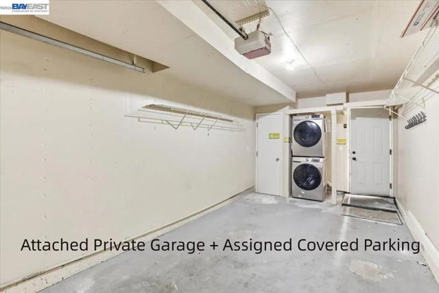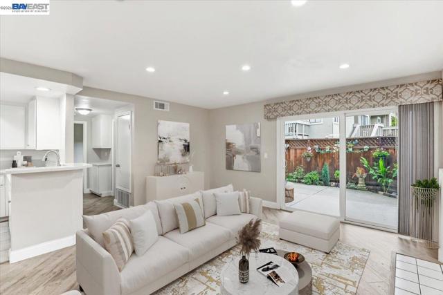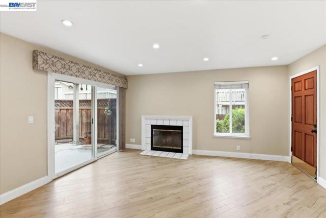 Ground-floor, level-in 2BD/2BA condo in a desirable gated Cobblestone community, offering single-family-style living with attached garage access and a private backyard patio. Bright and move-in ready with an open floor plan and abundant natural light. Upgraded kitchen with stone countertops. Luxury waterproof laminate flooring throughout, recessed lighting, and a cozy fireplace in the living room. Energy-efficient dual-pane windows and sliding glass door. Newer refrigerator, washer, and dryer are included. Private patio and backyard space ideal for relaxing, gardening, and entertaining. Attached garage plus one assigned covered carport. Community amenities include pool, spa, gated entry, and guest parking. Conveniently located near shopping, top-rated schools, and easy access to Hwy 680. Some images are virtually staged.