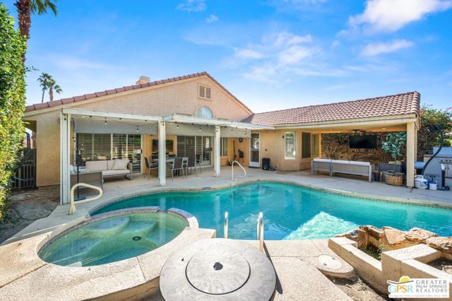Welcome to 39141 Sweetwater Drive, a beautifully updated home nestled within the hidden gem community of Avondale Country Club. From the moment you step inside, soaring vaulted ceilings and an expansive, light-filled living room create an inviting sense of space and comfort. A stylish built-in bar adds the perfect touch for entertaining guests or enjoying a relaxed evening at home. Designed with privacy in mind, the home features two spacious primary suites situated on opposite ends of the floor plan, each offering modern, upgraded bathrooms for comfort and convenience. Rich, large plank tile flooring throughout the home adds warmth, durability, and timeless elegance. Step outside to your own private resort-style oasis. The backyard is ideal for both relaxation and entertaining, featuring two covered patios, a built-in BBQ, and a sparkling pool and spa with a tranquil waterfall feature perfect for soaking up the desert lifestyle. The garage is equipped to accommodate an electric car charger, adding modern convenience to this exceptional property. Residents of Avondale Country Club enjoy access to outstanding amenities, including tennis and pickleball courts, a guard gate, a clubhouse, a fitness center, a driving range, and a beautifully maintained golf course.