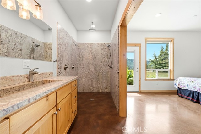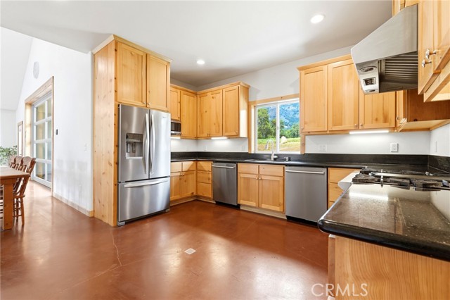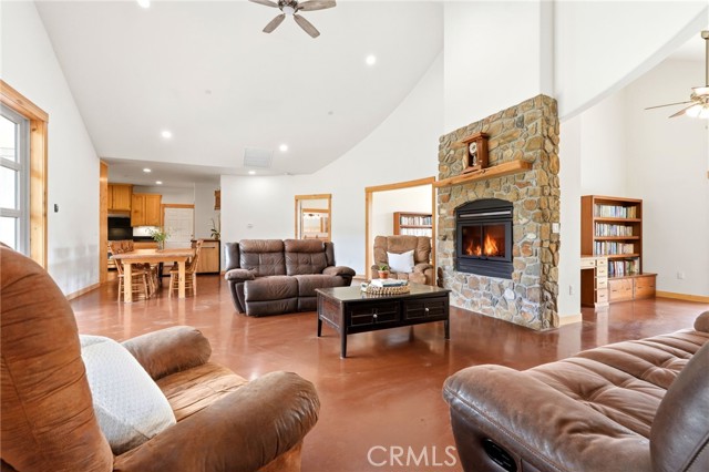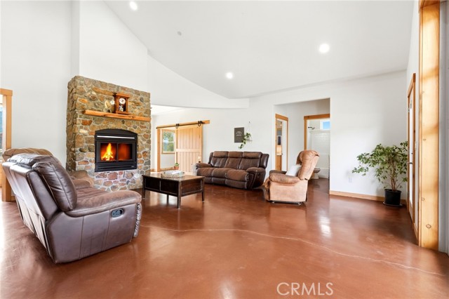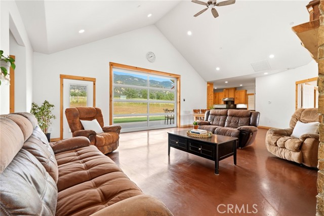 Nicely appointed on 20 private, usable acres with big open skies and expansive McKenzie Ridge views, this custom 2,100 sq. ft. estate balances high-end luxury with rural utility. Ideally located minutes from Hwy 180, Dunlap School, and the post office, the property features dual access points and is a short drive to Kings Canyon or a straight shot to Valley shopping. The home is built for longevity with a premium standing seam metal roof and fire-hardened exterior. Inside, vaulted ceilings and polished concrete floors meet local sugar pine trim. The living area features a stone fireplace and an operable glass roll-up door that opens to a covered patio plumbed for an outdoor kitchen. The chef's kitchen boasts a 36-inch Wolf range, dual dishwashers, and custom cabinetry. Designed for accessibility, all bathrooms including the granite-clad primary suite feature zero-step, floor-level transitions. Modern comforts include 9' ceilings, a dedicated library, a media room, and hydronic heated floors powered by a greenhouse wood stove with propane backup. The property offers high potential for agricultural and equestrian use, featuring 12-14 acres of newly fenced pasture sowed in oats, cleared of rock over the last three years, and framed by majestic, mature oak trees. The infrastructure is professional-grade: a massive 40x84 footprint including a 1,300+ sq. ft. sheetrocked garage with an enclosed bonus room, a tall 30x40 shop, a 36x36 stable barn, and a horse walker. Supported by a 100 GPM well (per log), the deer and rabbit-proof berry field (blueberries, blackberries, strawberries, raspberries) is equipped with full irrigation and a Dosatron nutrition injection system. The blueberries, now in their 4th year, produced an impressive 1,800 lbs last season. Leisure is equally prioritized with a greenhouse featuring an integrated hot tub and an 8.5-foot-deep pool with a diving board, privacy fencing, and a nearly finished pool house ready for your final touches. From the local wood finishes to the high-yield acreage, this meticulously maintained property is a rare opportunity to own a private, productive sanctuary where every detail has been executed with extraordinary care. *Square footages & room count may vary, to be verified by Buyer.