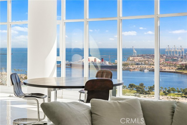 Live on the TOP FLOOR of a 30-story West Ocean luxury condominium complex! You will feel like a king with panoramic 280-degree views looking out over the ocean, coastline, and city from the penthouse of one of the most luxurious and tallest residential high-rise in all of Long Beach. This sprawling single-level penthouse has 3 separate balconies and mesmerizing views from every room. Well-appointed sophisticated design with a recent million-dollar remodel, including a Chef’s Kitchen with premium German Miele appliances, a Miele coffee machine, 2 dishwashers, an induction cooktop, custom-made Italian Dada cabinets, Caesar stone, French Oak woods, and a wired sound system. You will appreciate the innovative and elegant dual-glazed fully retractable slide pivot doors and walls installed by premier ultra slim folding patented side-lock technology for maximum noise protection, privacy to individual rooms, and converts to an open living environment, maximizing the panoramic views. West Ocean offers hotel-like amenities: 24/7 concierge, pool/spa, fitness center, billiard room, business center, lounge area, outdoor BBQ/fireplace, guest suites for visitors, and climate-controlled wine storage. Enjoy nearby entertainment, restaurants, historic Pine Avenue, Shoreline Village, Terrace Theater, Cinema, Farmer’s Market, Convention Center, the Aquarium, jet skis, sailing, fishing, and multiple yacht clubs. Please come and enjoy the City by the Sea, which can only be appreciated with a private tour of this exceptional penthouse.