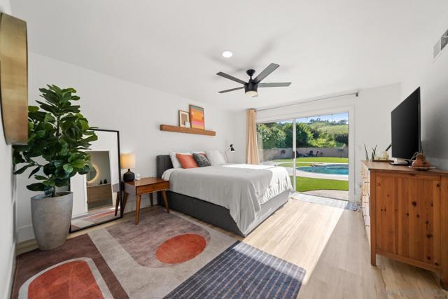 Experience this exquisite remodel on oversized .28 acre lot in coveted Bonita Highlands! Meticulous attention to detail, these owners thoughtfully curated every room, fixture and finish! A bright and open floorplan with vaulted ceiling and exposed wood beams, dual-sided stone fireplace, large living space flows into a gourmet kitchen with spacious island & breakfast bar, stunning tile backsplash, modern fixtures and abundance of storage. Palatial primary retreat features spa-like bath perfect for pampering. Perfectly manicured yard with sparkling pool, lush landscaping and green lawn perfect for play and entertaining! Surrounded by rolling green hills, this home is your own private sanctuary!