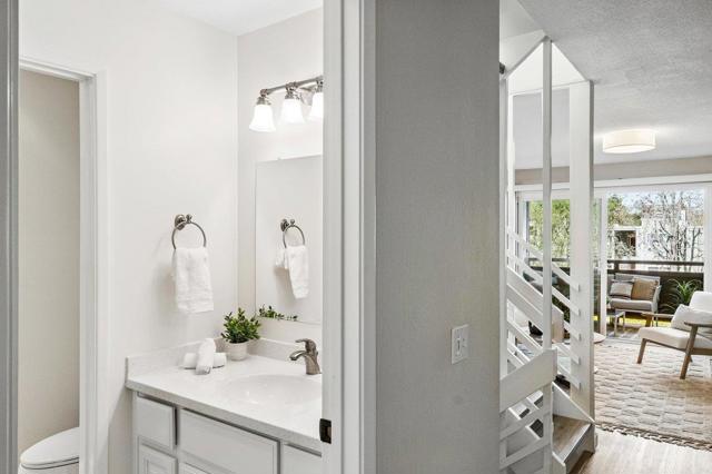 Peace, privacy and serenity in the hills of Redwood City. This townhouse style condo offers multiple outdoor spaces with serene views including partial Bay views from the primary bedroom. Enjoy morning coffee on the back deck and watch deer graze peacefully. Tranquility abounds! 2 bedrooms, 1.5 bathrooms over 1049 sq ft of bright living space. Primary features vaulted ceilings, ceiling fans and a private patio. Multiple built-ins create a home office nook between the two bedrooms and tremendous storage space in the second bedroom. A bright kitchen overlooks tranquil trees and opens to a bright dining space. The family room also features its own outdoor space creating seamless indoor outdoor living and entertaining. A massive crawl space on the ground entry floor with ample storage space. Easy 280 access and minutes to vibrant downtown Redwood City restaurants, shops, entertainment and so much more! The complex features a fabulous club house and pool with community barbeque space and ample hosted kids events!