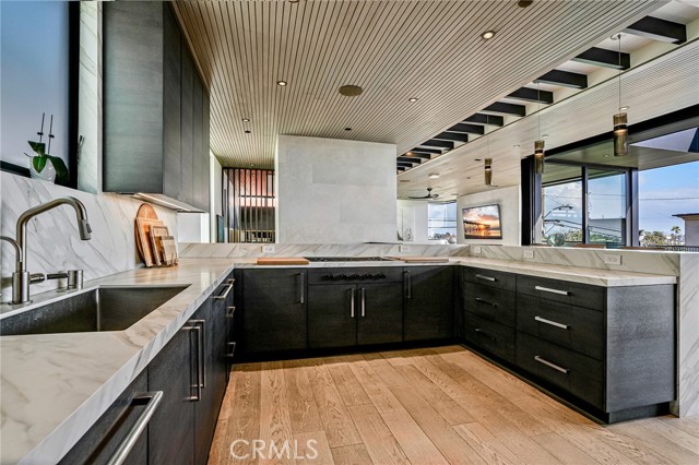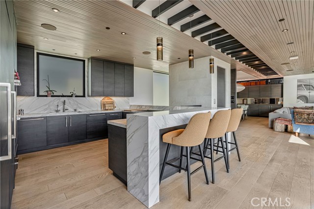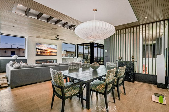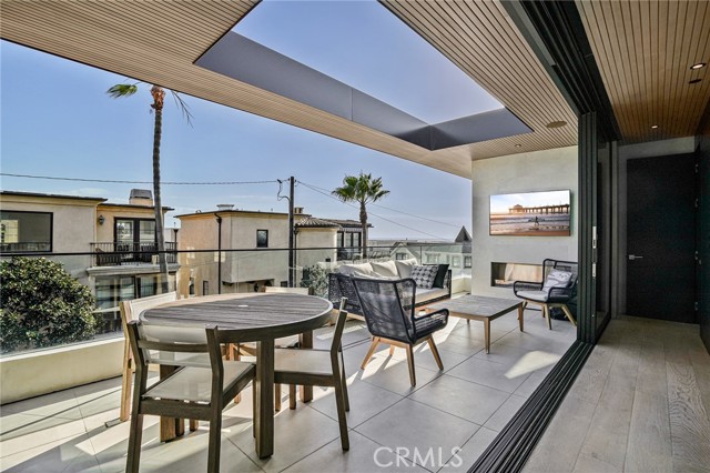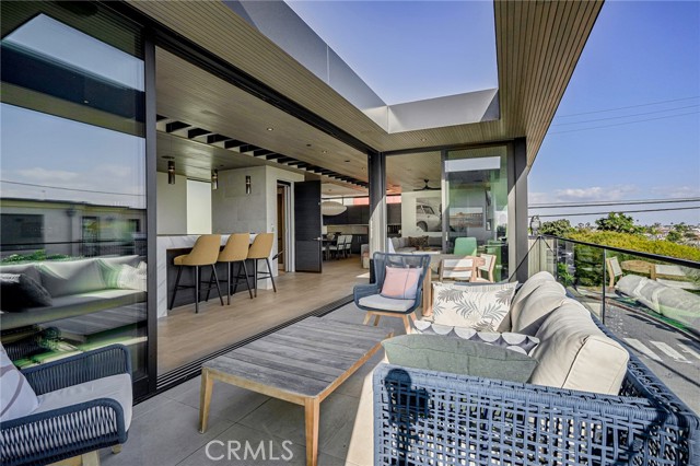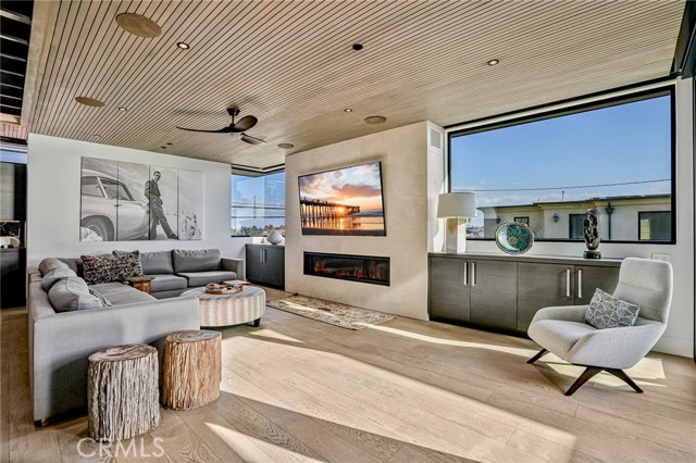Available starting May 2026, this Coastal Modern masterpiece offers the ultimate lifestyle in the heart of Manhattan Beach. Located on a bright corner lot just a few short blocks from the sand, this newer home—built by renowned local builder Jimmy Powers—has been thoughtfully upgraded, featuring hard-wired remote Lutron shades throughout and 3-zone heating and air conditioning for optimal comfort. Designed with entertaining in mind, the stunning third-floor Great Room is flooded with natural light and opens seamlessly through Fleetwood sliding glass doors to an ocean-view patio with fireplace and TV—perfect for sunset evenings, outdoor dining, or hosting friends after a day at the beach. The gourmet kitchen is equally impressive, equipped with Wolf appliances, dual dishwashers, Neolith countertops, a walk-in pantry, and a dramatic three-tower Sub-Zero refrigerator with wine cooler. An elegant living area with fireplace, spacious dining area with additional built-in wine fridge, and powder room complete the top level. The second floor features three en-suite bedrooms, including a spacious primary suite with spa-like bath, oversized walk-in closet, and private ocean-view balcony. On the first level, a fourth en-suite bedroom—ideal as a guest suite or office—sits just beyond the soaring entry foyer. Additional highlights include an elevator, hardwood floors throughout, Control4 home automation with integrated speakers, Samsung thermostat, Fleetwood windows and doors, and designer lighting. Enjoy living just moments from the beach, Downtown Manhattan Beach dining and shops, and everything that makes coastal living exceptional. This is a rare opportunity to enjoy a fully dialed-in luxury home in a prime MB location.