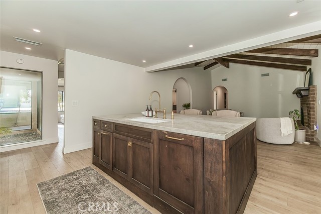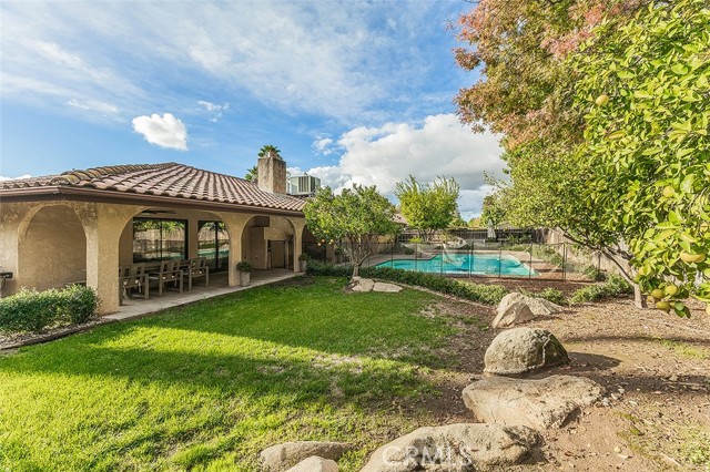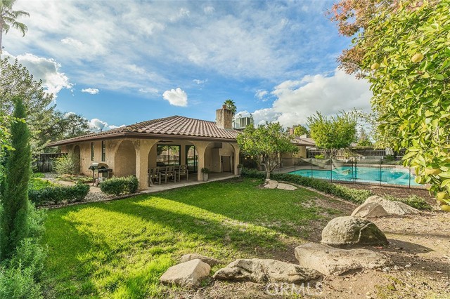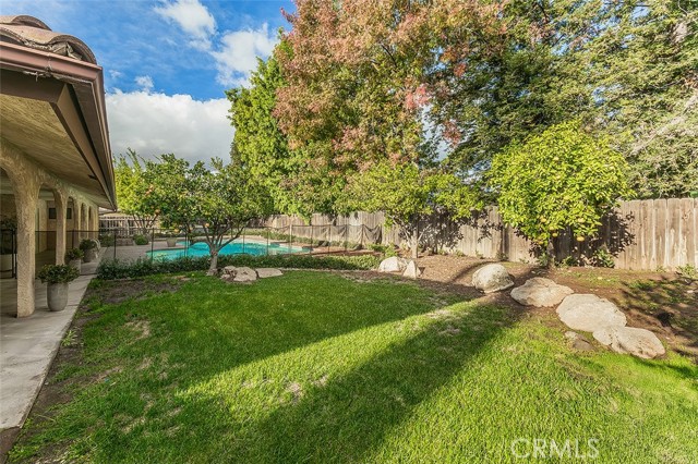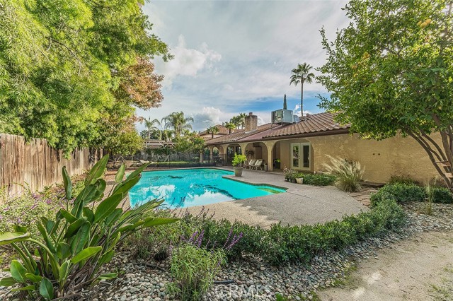 This impressive very desirable NE Fresno 4 bedrooms and 2 bathrooms home is complete with so many amenities and features that you have been looking for. You will love arriving home to the circular driveway leading to the huge 3 car garage , tiled roof, and gated front entry with very tall wood double doors. Continue to be impressed with beautifully chosen smooth wall paint with 5.5" baseboards and the deluxe laminate and tiled flooring. . The rounded archways in the interior greet you as you enter this great floor plan with a separate living room, dining room, and family room with vaulted beam ceilings, and a brick wood burning fireplace. You will appreciate all the floor to ceiling windows and views to the exterior that this home has to offer. The completely remodeled kitchen one year ago is a dream come true with so many designer touches and loads of upgrades. All the countertops in the home are tastefully chosen quartzite including the 8' x 5' eating bar island for daily dining or very fun for all the family gatherings with an amazing well designed storage area as part of the construction. The gourmet upgraded Z Line appliances include a gas cooktop with its own pot filler, fabulous custom hood, a very impressive builtin refrigerator, an appliance garage, and outstanding cabinetry with unlacquered brass hardware and faucets. All the bedrooms are very spacious with a lovely primary suite with vaulted ceilings and walk-in closet plus a beautifully remodeled bathroom with a deluxe rainforest shower for your relaxation and a sliding door to the rear yard. In addition to all the living space this home has to offer, the very large walk-in linen closet and shop area/craft room will give added comfort and space for all the needs of your family. The backyard has been tastefully designed with the arched very long patio overlooking the spacious pool for hours of enjoyment. There is an abundance of many varieties of citrus trees etc. plus much lush well maintained landscaping on this 1/3 acre parcel +-. This NE Fresno neighborhood is conveniently located near shopping, restaurants, and Freeway 41 and the very desirable Clovis Schools.