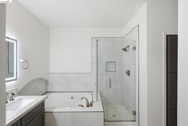 Resort style living at The Villas! This recently updated unit is the nicest in the community and features a great location! Sellers updated kitchen and baths with sleek quartz counters, modern cabinets and tile, and fresh interior paint throughout. Rare single level unit features all living spaces on one floor. Open floor plan features a spacious living room with private patio access. Kitchen offers a large island with lux quartz countertops and lots of cabinet and counter space. Large primary en-suite features a walk-in closet, access to patio, and bath has dual vanities, stall shower, and separate tub. Second bedroom has a separate private balcony and large closet. Full laundry room features washer/dryer and additional cabinets. Ideal location in the community is close to the pool, fitness center, and clubhouse. There is also a green belt right in front of the home. Very low HOA dues ($377/month) as well! This desirable Dublin Ranch location is walking distance to shops, restaurants, schools, parks, medical centers (Kaiser and Palo Alto Medical Foundation), plus easy freeway access. With an attached 2 car side-by-side garage, fantastic floor plan, and unbeatable location, this home has it all! Visit www.4132Clarinbridge.com for 3D tour, pictures, and floor plan.