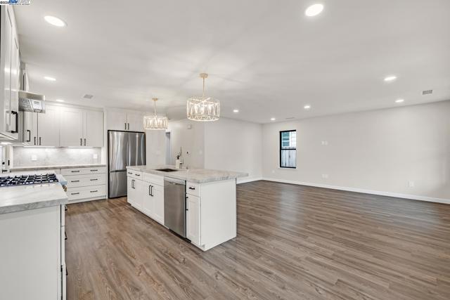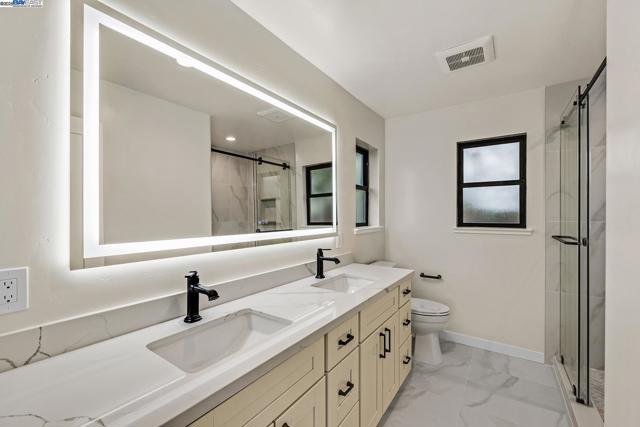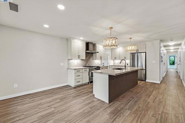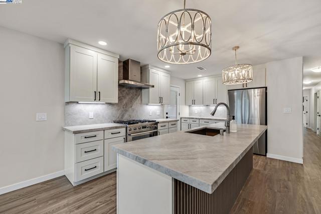 Spectacular Mission San Jose Home. Beautifully expanded, remodeled and upgraded. 4 bedrooms (2 primary suites with bathrooms), 3 baths, 1,540+ square feet, single story, with a 1 car attached garage with roll up door & opener. Deluxe gourmet kitchen features: Quartz counters and full backsplash, L.V.T. flooring, Stainless Steel appliance including Bosch 6-burner gas stove, oven, dishwasher, refrigerator, hood, and sink. Lots of cabinets & counter space, custom light fixtures, & recessed lighting. Large great room with recessed lighting, dining area with recessed lighting. New Central Heat & A/C, New Composition shingle roof, New Plumbing & New 200 amp electrical service ,prepped for E.V. charger, New Millgard Dual Pane windows. Ceiling fans in all bedrooms. L.V.T. flooring throughout. Large walk-in closet in rear primary bedroom. Oversized stall shower in rear primary bathroom and L.E.D. front & rear lit mirror with anti-fog feature. Inside laundry with stainless steel sink, quartz counter, and lot of cabinets. Low Maintenance front & rear landscaping with new back fence. New Concrete Driveway & walks. Huge Patio Area. 499 square foot addition done with permits. Buyer to verify permit status and square footage. Open 11/15 & 11/16: 1:30-4pm.