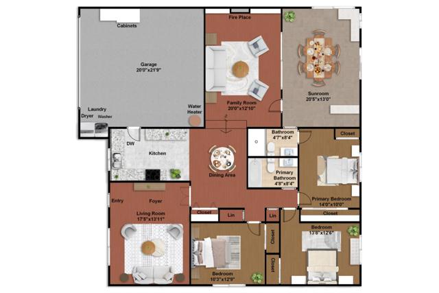 Single-story home in Mission San Jose area with functional layout and bonus sunroom space. Interior features include hardwood flooring, large windows, and a family room with fireplace. Lighting includes flush-mount and recessed fixtures throughout. Kitchen includes raised-panel wood cabinetry, tile flooring, and stainless steel appliances (range, hood, microwave, dishwasher). Enclosed sunroom provides additional usable space with decorative painted brick accent wall, sliding glass door to backyard, built-in seating, and built-in countersuitable for lounge, office, or playroom use. Bedrooms are spacious and bright with built-in closets, including one bedroom with new luxury vinyl flooring. Bathrooms include floating vanities, sliding glass shower doors, and tub-over-shower configuration. Hall closet for additional storage. Located near Mission Valley Elementary, William Hopkins Middle, and Mission San Jose High. Close to parks, shopping, and international dining. Easy access to Hwy 84, 680, 880, and Mission Blvd