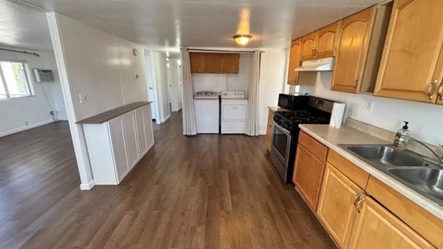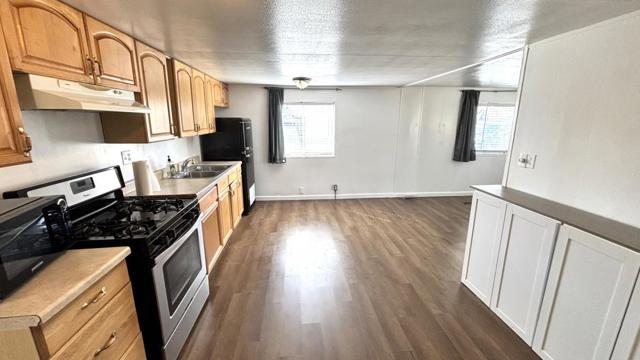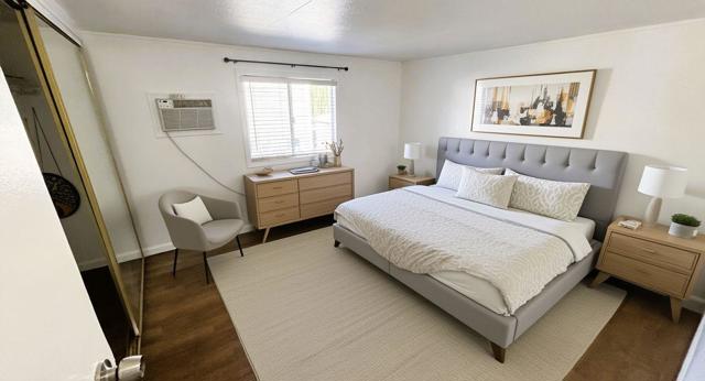 Discover this charming 1978 home located in the Community of Stadium Club Estates. This delightful residence offers approximately 864 square feet of living space, with 2 bedrooms and 1 bathroom. Upon entering, youll notice the stylish laminate flooring throughout the home. The kitchen is well-equipped with a refrigerator, stove, oven, and ceiling lights. The bedrooms also feature laminate flooring and built-in closets, with one bedroom offering a mirrored closet. The bathroom includes both a tub and a shower. The backyard is equipped with a shed, providing perfect additional storage space. This is a Senior Park (55+) that offers a variety of amenities, including a clubhouse, pool, recreational facilities and more. Stop by today!