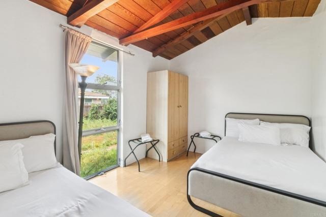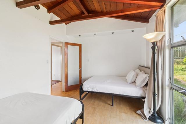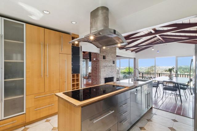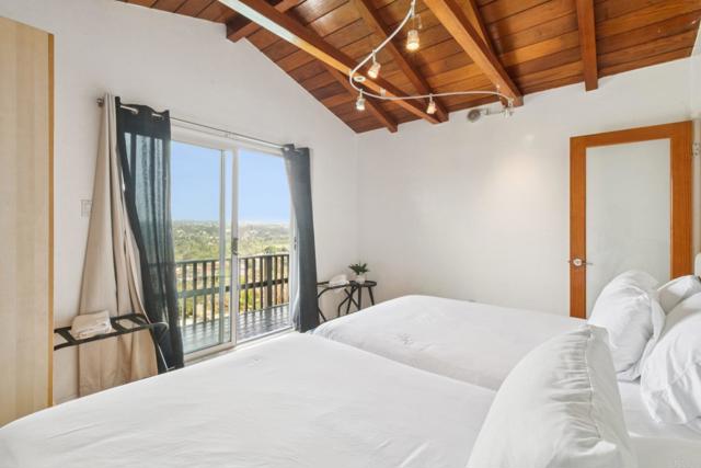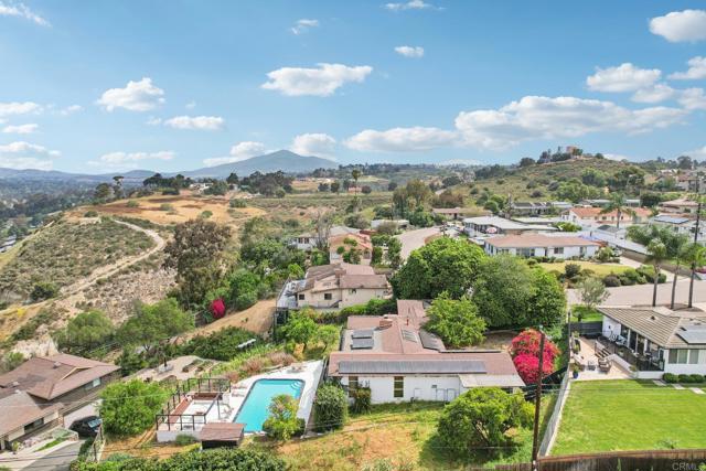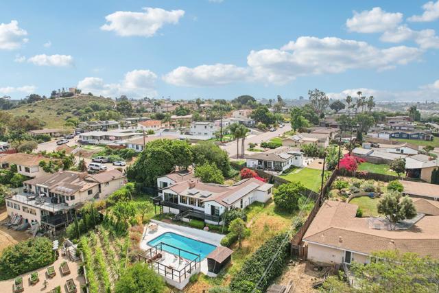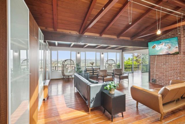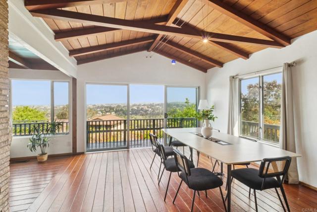 Perched in the scenic hills of Lynwood, just moments from Bonita, this one-of-a-kind mid-century modern retreat offers 3 bedrooms, 3 baths, and 1,742 sq ft of living space, delivering panoramic views, privacy, and true Southern California living. From sunrise over the East County mountains to glowing sunsets stretching toward Coronado Island, the wraparound deck captures it all. Set on over a third of an acre on a quiet cul-de-sac, this property feels like a private escape while remaining close to everything—Sweetwater Regional Park, hiking trails, I-805, Plaza Bonita, and the vibrant dining scene of downtown Chula Vista. Designed for both relaxation and entertaining, the outdoor space features a large family-size pool, patio, BBQ area, and fire pit, surrounded by mature landscaping and fruit trees. Inside, the home offers a warm and inviting layout. The primary suite includes a full en-suite bath, while the guest bedroom and additional bedroom/office each offer their own ¾ baths, creating flexibility for guests or multi-use living. The main living area showcases hardwood floors, a cozy fireplace, and striking tongue-and-groove wood beam ceilings that add character and charm throughout. The kitchen is designed for functionality and creativity, featuring a double oven, 6-burner cooktop, prep sink, and generous workspace, complemented by a cozy dining nook perfect for everyday living. This is a rare opportunity to own a truly distinctive home with unmatched views, character, and lifestyle appeal.