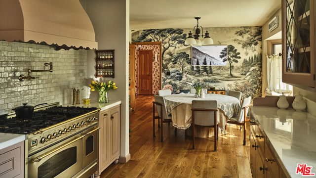 Set behind gates on nearly three-quarters of an acre of flat, park-like grounds in the heart of Toluca Lake, this beautifully restored traditional estate offers a true sense of retreat in one of Los Angeles' most beloved neighborhoods. Designed with exceptional care and recently transformed by Asom Home, the five-bedroom residence balances timeless architectural character with a refined yet relaxed sensibility, set amid exquisite landscaping by Orca Living that evokes the feeling of a countryside estate. Inside, generous living spaces unfold with warmth and elegance, where original architectural elements meet carefully considered modern updates. Custom woodwork, peg and groove flooring, and a natural stone fireplace are just a few of the details that anchor the main living areas, which flow effortlessly outward and establish an easy rhythm between the home and its landscape. The expansive grounds reveal a series of beautifully composed moments designed for both entertaining and quiet retreat. Sunlit terraces and layered California natives surround a seamless pool and spa, while a charming pool house with its own bedroom and bath offers an ideal guest suite, office, or creative studio. Located within a coveted enclave long favored for its quiet streets and notable homes, the estate reflects the distinctive character that has made the neighborhood one of Los Angeles' most beloved communities.