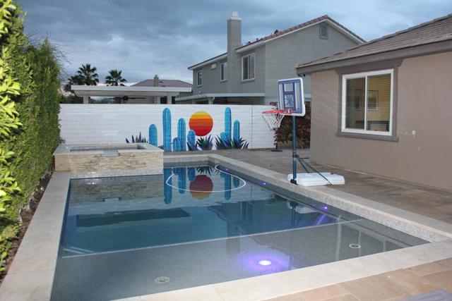 Terra Lago Single Level 5 bedroom, 2 bath Pool, Spa home! STR Ready offered Furnished! Upgraded with Luxury Laminate Flooring, Neutral Paint & Decor! Great Floor Plan by Lennar, Open Concept, awesome for Entertaining and Relaxation! Cook's Kitchen with Island, Granite Counter tops, Breakfast Bar, lots of Storage and Counter space! Fridge Included. Great Room with Fireplace, Ceiling Fan. Slider door off Great Room, Dining area to access Private Pool/Spa! All Bedrooms are generously sized! Primary Bedroom is King Sized, Primary Bath with Dual Sink Vanities, soaking Tub and Separate Shower. Large Walk in Closet. Laundry Room with deep soaking sink, Washer & Dryer included! 2 car attached garage. This home is STR approved, great opportunity to Enjoy as your Vacation Retreat and Earn some Income!