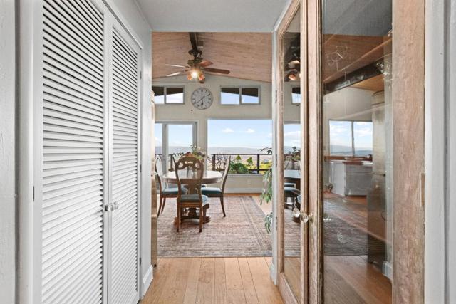 Spectacular, panoramic million dollar views in this beautiful English country style home with a welcoming entry way of comfort - pellet stove, floor-to-ceiling bookshelf, exposed beams ceiling, and antique furnishings. This home has everything and more: 5 spacious bedrooms, 3 full bathrooms, exposed wood beams ceilings, skylights, original 7-inch oak hardwood floors, open floor plan thoughtful layout, stainless steel appliances, fire stoves, wrap-around deck, garage and workshop, 3-car carport, views from every vantage point, and energy efficient features such as owned solar panels and Tesla battery power station. The seamless connection between indoors and out where there's a view from every room is postcard-perfect. A rare sense of privacy, tranquility, and endless views stretching across the surrounding countryside where mornings begin with sunlight pouring through expansive picture windows and evenings end with peaceful sunsets and star-filled skies. Other special features include: a swimming pool, hot tub and spa, a bath house, sauna, and high band fiber optics internet connection. Envision a peaceful escape, yet have access to modern technology assets and efficiency. Only 10 minutes from town and easy access to highways and coastal towns. This is it! HOME SWEET HOME.
