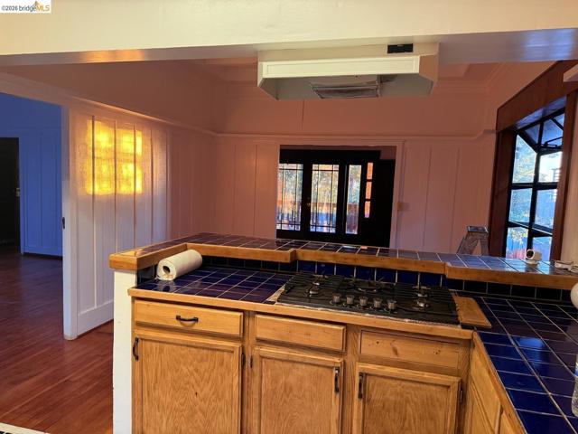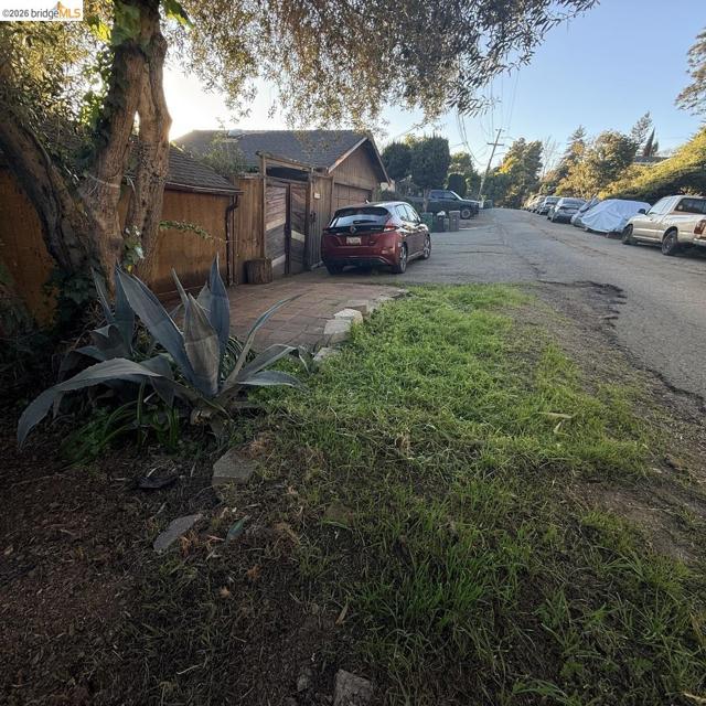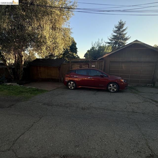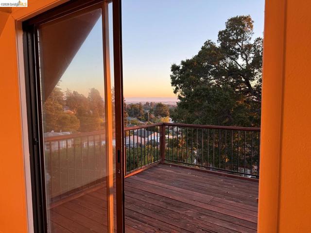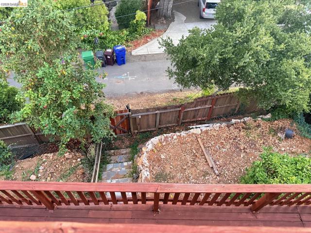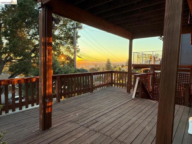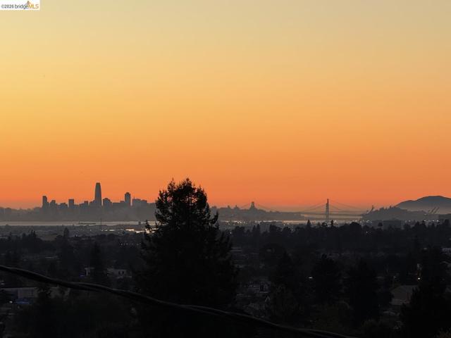 This is an opportunity to restore and customize a property, located in the Redwood Heights area in the Oakland Hills. Property includes a private yard with a Meyer Lemon, Orange, Fig and Avocado tree. Fully fenced and gated through lot, with dual street frontage, creating a property with access from two parallel streets. Additional features include a detached garage that opens from the street area, and has access to the interior of the property. Room for 3 parking spaces on property, plus the garage. There are two wood sheds. Deck with a hot tub. Hardwood floors throughout and tile in kitchen & bathrooms. Working wood fireplace in the living room. Bathroom has a 11' x 7' redwood sauna, a clawfoot bathtub, and shower stall. Decks off the living room & upstairs bdrm have views of the bay, bridges, & sunsets. Unfinished basement area of approx. 600 sf with over 8' high ceilings.