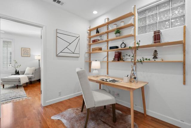 Welcome to the serenity of home in this immaculate 1 bedroom home which offers a beautiful floor plan of approximately 884 square feet. This fashionable home offers a roomy open floor plan in the main living space with abundant windows that bathe the space with warm natural lighting. The flooring throughout is handsomely dressed with a mixture of laminate and tile. Prepare family meals with ease in the well designed kitchen with generous cabinetry and sleek countertops that provide a great environment for todays home cook! Central air conditioning keeps the temperature in the home just right and laundry duties are a breeze with the in-home units located in the roomy garage. Youll find extra storage space in the oversized garage! Low monthly HOA dues of $341. This is fine urban living! Come visit and envision your life at 445 Milan Drive #202 in San Jose!
