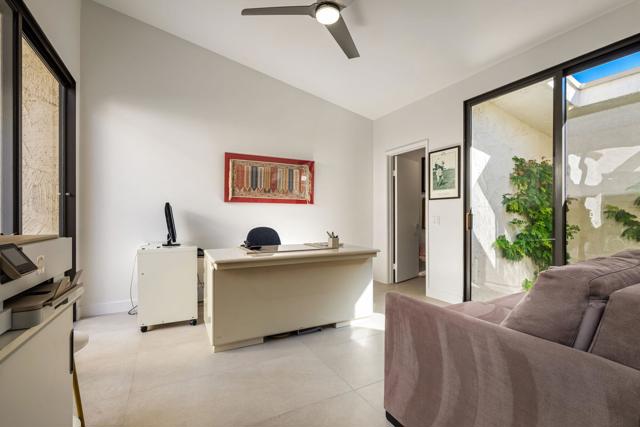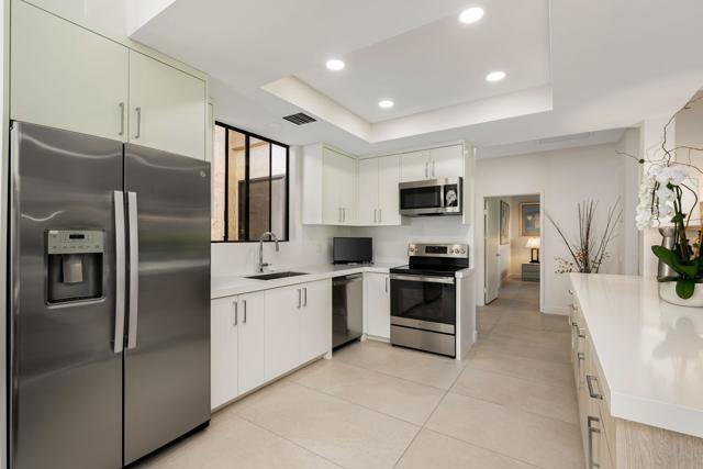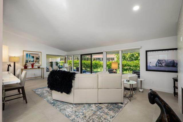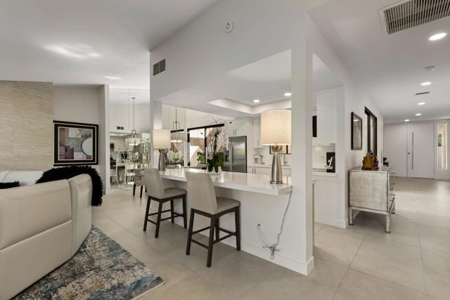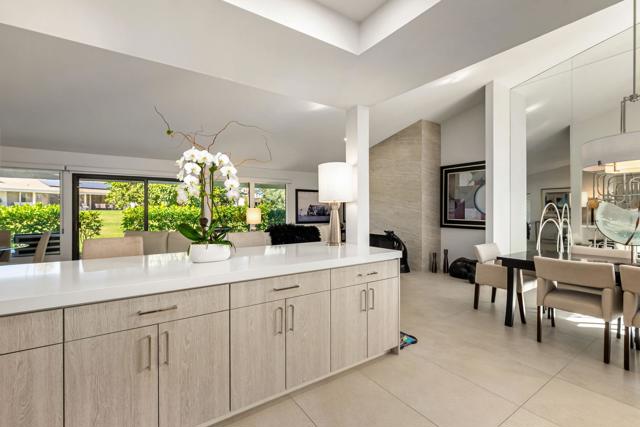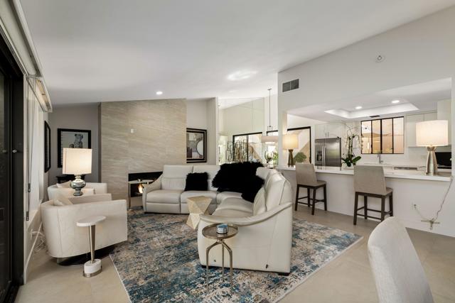 Stunning Remodeled Home with Luxury Designer Touches. Overlooking lush greenbelt and second fairway views, this exceptional residence is ideally located in the heart of Indian Wells at Desert Horizons Country Club and exemplifies sophisticated design with high-end finishes--perfect for both refined living and effortless entertaining.A spacious private front courtyard welcomes you into an open-concept floor plan highlighted by meticulous craftsmanship, including 24'' x 48'' Italian porcelain tile flooring throughout that extends floor-to-ceiling along the dramatic fireplace, along with custom textured walls and ceilings. Extensive upgrades include new plumbing and electrical systems, custom lighting, and 4'' baseboards that enhance the home's modern aesthetic.The expanded remodeled Chef's Kitchen has been thoughtfully opened to the Great Room to maximize sightlines to the stunning views. It features a new island with white quartz countertops, soft-close custom cabinetry, and state-of-the-art GE appliances--ideal for gatherings both large and intimate.The Primary Suite offers a generous walk-in closet, dual vanities, a large walk-in shower, and private patio access. Two guest bedrooms each feature en-suite designer bathrooms with custom tile, sleek fixtures, and spa-inspired finishes.The property also benefits from a leased solar system for reduced energy costs. Enjoy the convenience of a community pool just steps away. Country Club resort-style amenities include a newly remodeled clubhouse, private 18-hole golf course, 8,000+ sq. ft. fitness and wellness center, and sports court pavilion--delivering the ultimate desert lifestyle.This is more than a home, it's luxury living at its finest. Don't miss this opportunity. Schedule your private showing today.